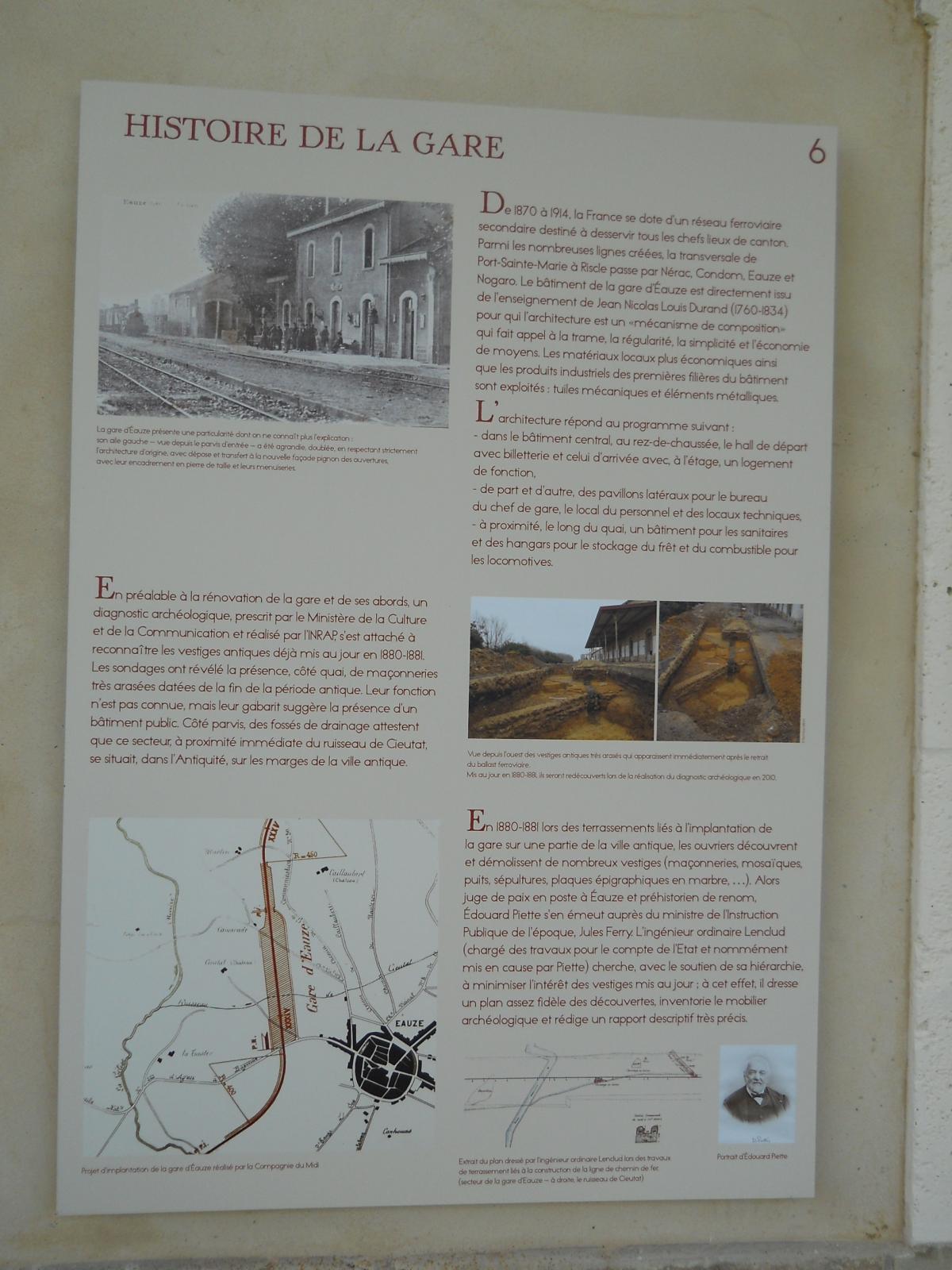 Tout simplement ! Depuis peu (je crois que cela a ouvert cette année), cette gare sert de lieu d'exposition et d'accueil pour la visite, 100 mètres plus loin, des fouilles d'une ancienne villa romaine. La ligne elle-même avait été construite sur des vestiges gallo-romains dont les ingénieurs de la Compagnie du Midi s'étaient efforcés de minimiser l'intérêt archéologique.