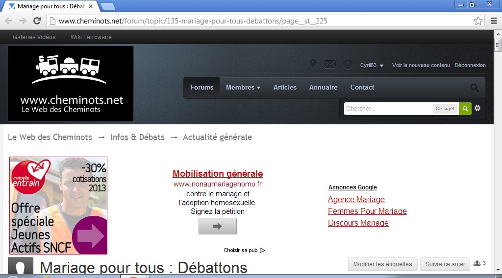 Après avoir pris position pour IDbus, cheminots.net vient de prendre position contre le mariage pour tous. Un peu déplaisant, tout ça...