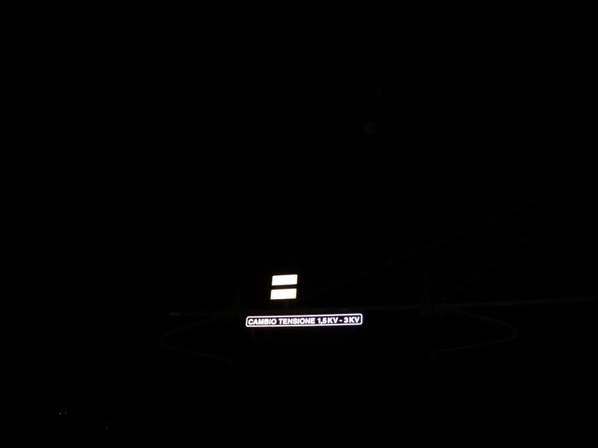 un message dans un sujet a répondu à luxemburg dans INFRA : gestion des circulations, voie, bâtiment, ouvrages d'art, signalisation, caténaires, ...Pour répondre à ta curiosité: En venant de France: _Branche Menton Genes 2 voies, jusqu'à la bif de la calandre c'est du 25KV, au dela c'est du 1500V jusqu'à la sortie de la gare de Vintimille, où ça passe en 3KV. Le PK que tu dis ne correspondre à rien est en fait la limite de la gare de Vintimille. Après ce PK c'est géré par Menton, et, c'est de la réglementation française. _Branche Bif de la calandre La Roya c'est du 1500, une voie. cette branche croise à niveau la ligne Vintimille Breil c'est ce que tu as pris pour une TJD. Menton gere la quasi totalité de ce raccord, donc signalisation française. Il nous reste une troisieme branche: Vintimille, la Roya c'est electrifié en 1500, signalisation italienne, géré par les italiens, une seule voie. Vintimille gere les instalations electriques alimentée en 1500, Marseille celle alimentées en monophasé. Il nous reste le faisceau de la roya Il y a des voies electrifiées, et d'autres non. A l'origine, il y avait des voies electrifiées en 3000. Je ne pense pas que cela soit toujours d'actualité. Ce n'etait pas l'endroit indiqué par bobdobbs. C'etait les 3 voies de gauche du faisceau. ce que l'on voit sur la photo donne accés a une petite voie non electrifiée. Quand à savoir pourquoi, le faisceau coté montagne n'est pas raccordé à la ligne qui monte à Breil, primo il n'y a pas de trafic fret sur cette ligne, secundo il faut un ascenseur pour rattrapper le denivellé entre le faisceau et la ligne de breil. Voici la photo du 1500/3000 à la roya. Il n'y avait pas d'annonce