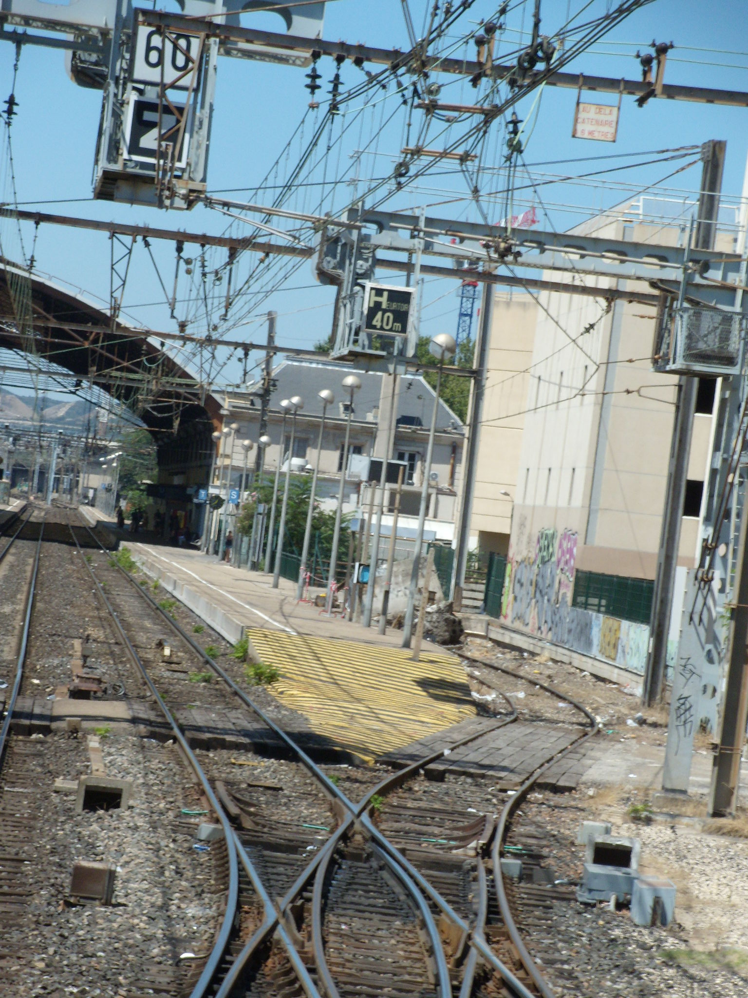 16. En venant de Cavaillon, tu as A +RR+ tableau voie courte En venant d'Orange, il n'y a pas de bande jaune non plus, je me demande, s'il n'y a pas le meme style de tableau specialisation oblige, j'ai perdu la connaissance de ligne rive gauche Longueur de cette voie: 40 metres