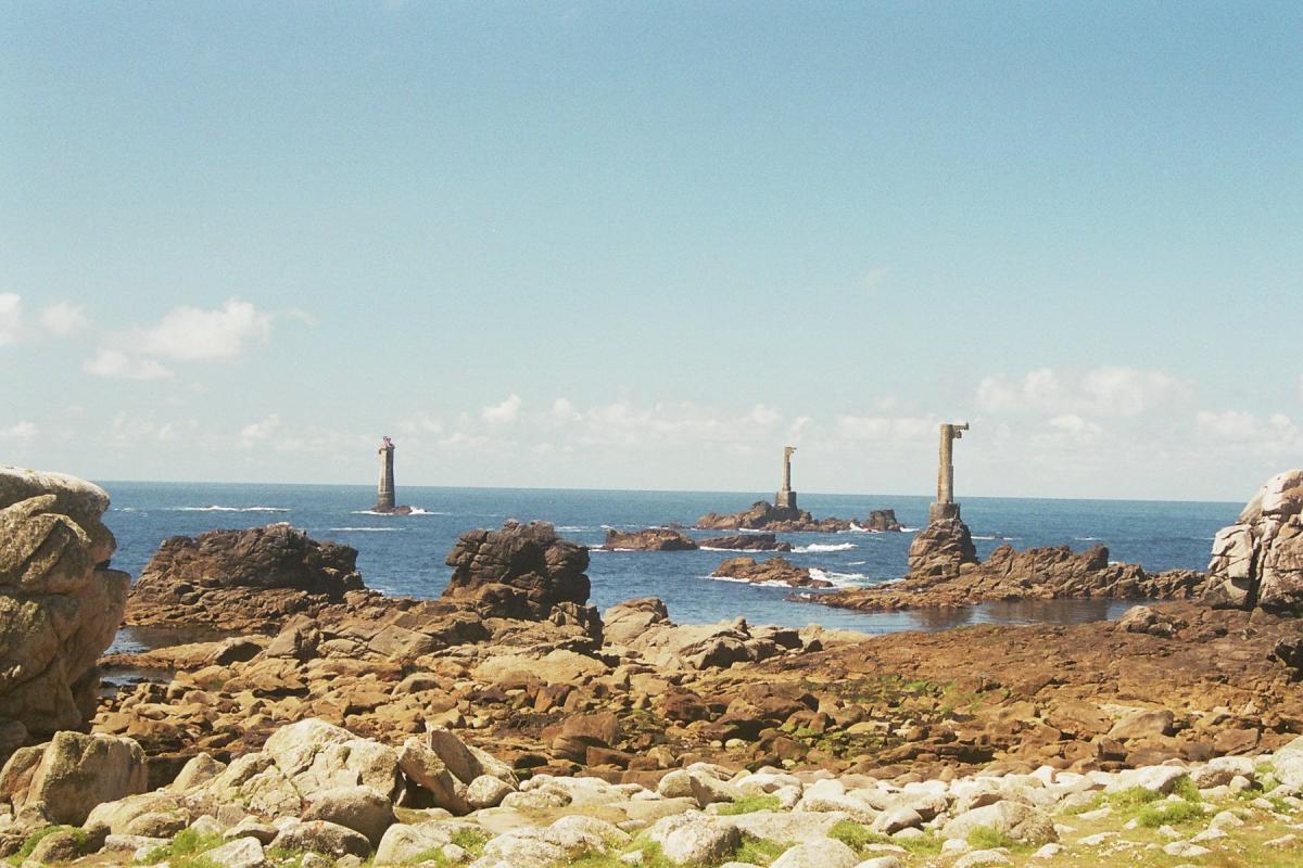 Les phares du bout du monde : France continentale : la pointe St Mathieu Kermorvan au Conquet (29) ou sur Ouessant (Enez Eussa) Nividic, en Espagne sur le cap Finisterre... Nividic : Ce phare était relié à l'île par une sorte de téléférique , les pylônes sont toujours là. Kermorvan (le temps n'était pas favorable (bon j'ai eu dans ce séjour d'une semaine au Conquet 2 jours mauvais sur une bonne semaine) http://www.cheminots.net/forum/uploads/post-21318-0-79532100-1415008472.jpg.