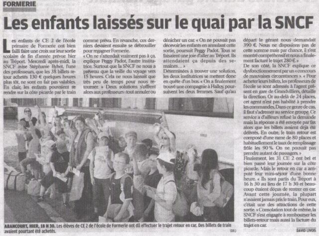 Un article du Parisien. Tout fout le camp . La SNCF ne sait plus assurer les sorties scolaires très nombreuses les derniers mois de l'année scolaire ! :)