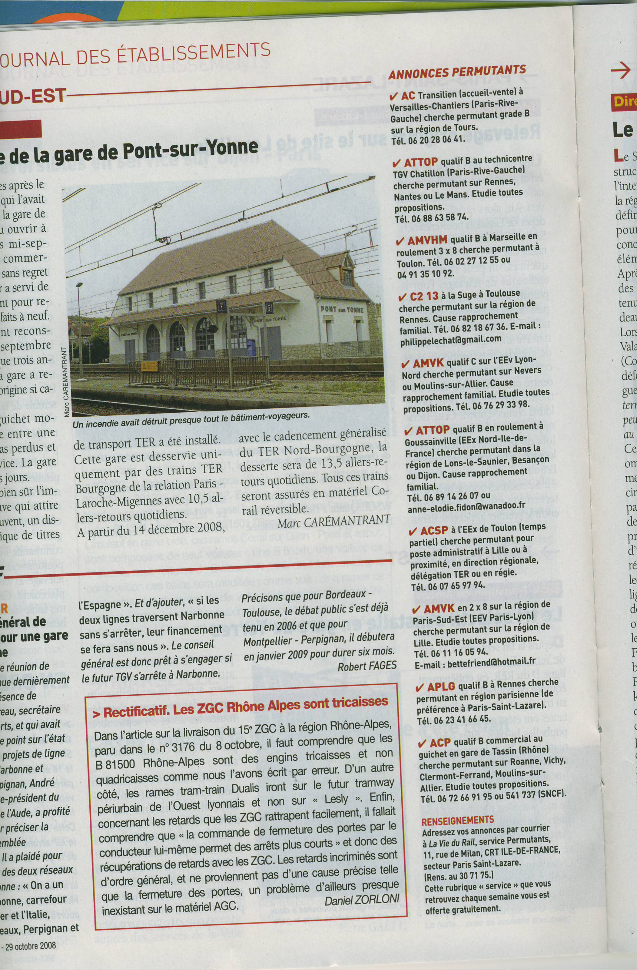 Les annonces permutants du dernier N° de la Vie du Rail dans le fichier ci-après. Il y a également le N° de tél à contacter pour faire paraître gratuitement une annonce.
