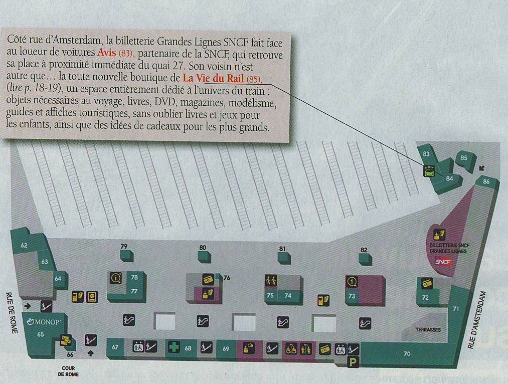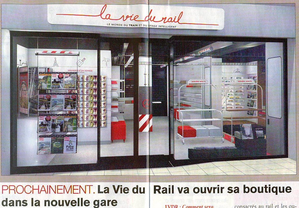 La Boutique de "La Vie du Rail" de la gare de Paris Saint Lazare bien en vue. Il y a encore une annonce pour la recherche du responsable de la boutique.