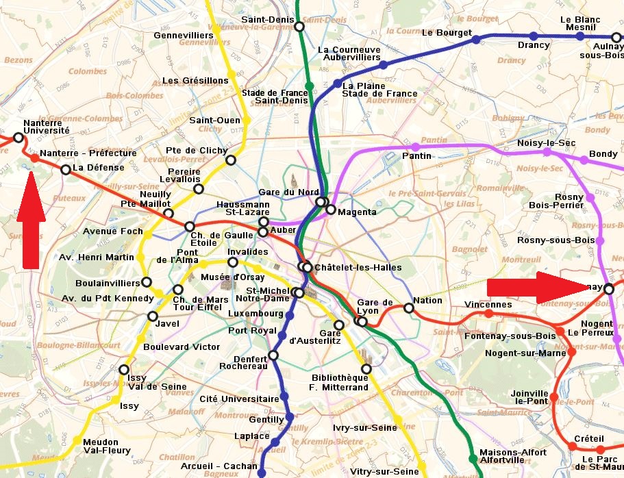 Pour ceux qui comme pour moi, ligne A, B ou X'-Y=Z n'évoque rien et encore moins les stations évoquées, voilà une carte : Ligne orange, section entre les deux flèches :