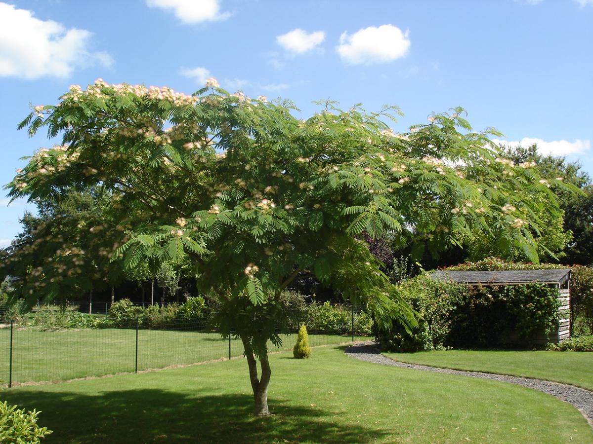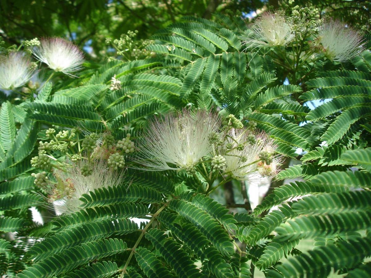 En partant, je me doutais bien que l'albizia allait fleurir d'ici peu ... à mon retour, il m'offre un beau cadeau :