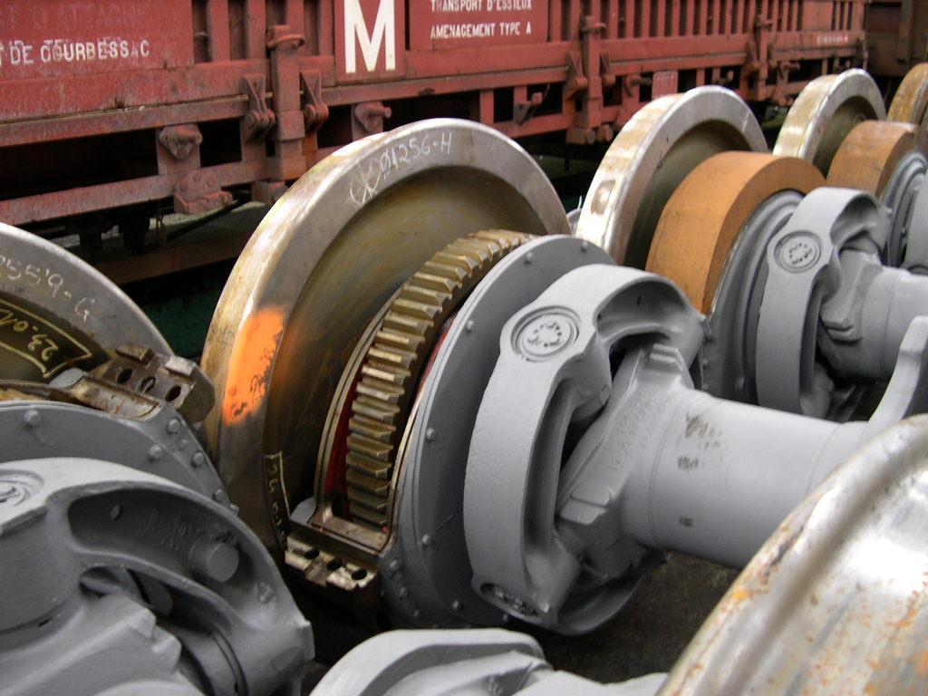Voici à quoi ressemble un réducteur 200 avec au son centre le plateau denté de l'accouplement Citroën : http://www.cheminots.net/forum/uploads/monthly_02_2007/post-2268-1171809124.jpghttp://www.cheminots.net/forum/uploads/monthly_02_2007/post-2268-1171809132.jpghttp://www.cheminots.net/forum/uploads/monthly_02_2007/post-2268-1171809164.jpg Là, un essieu avec son engrenage qui vient en contact avec le réducteur. L'essieu possède différents anneaux (en gris) qui permettent l'entrainement des 2 roues (transmission Jacquemin) : http://www.cheminots.net/forum/uploads/monthly_02_2007/post-2268-1171809289.jpghttp://www.cheminots.net/forum/uploads/monthly_02_2007/post-2268-1171809299.jpg Maintenant, un bogie sans son moteur où on distingue bien le réducteur qui repose sur les 2 essieux ainsi que le plateau de l'accouplement Paulstra : http://www.cheminots.net/forum/uploads/monthly_02_2007/post-2268-1171809410.jpghttp://www.cheminots.net/forum/uploads/monthly_02_2007/post-2268-1171809419.jpghttp://www.cheminots.net/forum/uploads/monthly_02_2007/post-2268-1171809428.jpg Et enfin, un bogie de BB 26000 avec son moteur synchrone STS-105-37-8. On distingue bien en sortie d'arbre du moteur l'accouplement élastique de type "Paulstra" qui entraine le pignon moteur du réducteur, qui à son tour entraine les deux essieux : http://www.cheminots.net/forum/uploads/monthly_02_2007/post-2268-1171809604.jpghttp://www.cheminots.net/forum/uploads/monthly_02_2007/post-2268-1171810014.jpghttp://www.cheminots.net/forum/uploads/monthly_02_2007/post-2268-1171809627.jpg http://www.cheminots.net/forum/uploads/monthly_02_2007/post-2268-1171809669.jpghttp://www.cheminots.net/forum/uploads/monthly_02_2007/post-2268-1171809679.jpg http://www.cheminots.net/forum/uploads/monthly_02_2007/post-2268-1171809717.jpghttp://www.cheminots.net/forum/uploads/monthly_02_2007/post-2268-1171809727.jpg Désolé pour la qualité des photos, je n'ai pas pu faire mieux. lotrela