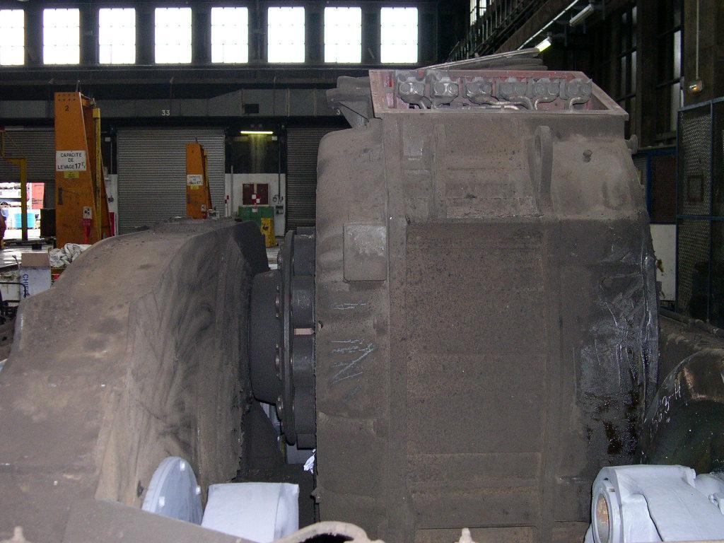 Et en parlant de "canon-box", voici un moteur de 27000 avec sa transmission. On remarque aisément la simplicité de ce type de transmission par rapport à une transmission Jacquemin. http://www.cheminots.net/forum/uploads/monthly_02_2007/post-2268-1171895886.jpghttp://www.cheminots.net/forum/uploads/monthly_02_2007/post-2268-1171895871.jpg http://www.cheminots.net/forum/uploads/monthly_02_2007/post-2268-1171895856.jpghttp://www.cheminots.net/forum/uploads/monthly_02_2007/post-2268-1171895841.jpg Je rappel que les moteurs des 27000 sont suspendus par le nez. okok
