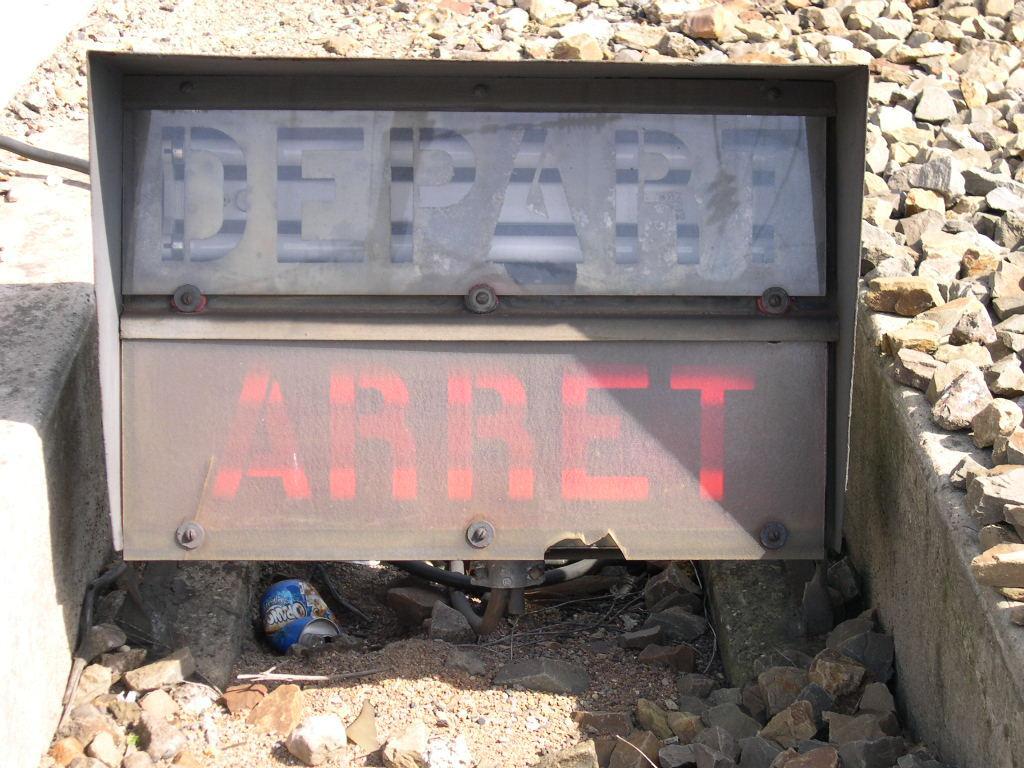 Voici une particularité du Bourget où le départ des trains d'un faisceau de voies convergentes est donné par un tableau lumineux implanté au ras du sol et à gauche de la voie correspondante. Cette particularité est reprise à la section "Départ des trains" au paragraphe 5 des RT correspondant à la section de ligne (2221 par exemple). Signal de groupe fermé : http://www.cheminots.net/forum/uploads/post-2268-1176108708.jpghttp://www.cheminots.net/forum/uploads/post-2268-1176108729.jpg Signal de groupe ouvert et départ à la voie correspondante : http://www.cheminots.net/forum/uploads/post-2268-1176108851.jpghttp://www.cheminots.net/forum/uploads/post-2268-1176108877.jpg Je pense que beaucoup de collègues vont reconnaitre ce faisceau...