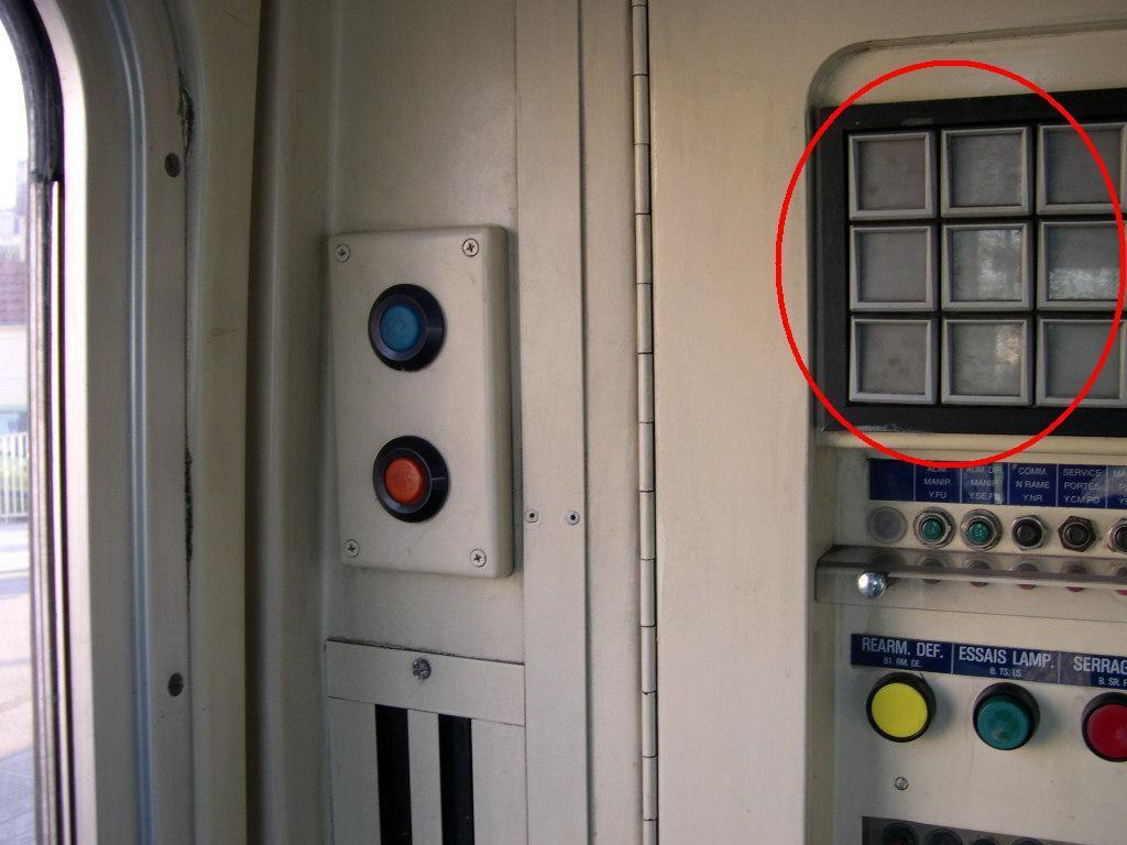 Les voyants dont-il te parle sont situés au dos et à gauche du conducteur. Tu peux en voir une partie sur la photo ci-dessous : De plus, tu peux voir le bouton poussoir qui commande le serrage des FI (le rouge juste au-dessous des voyants).