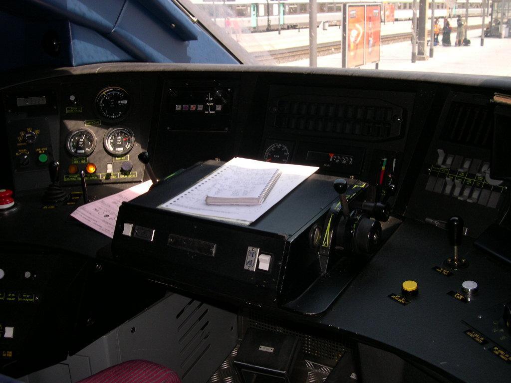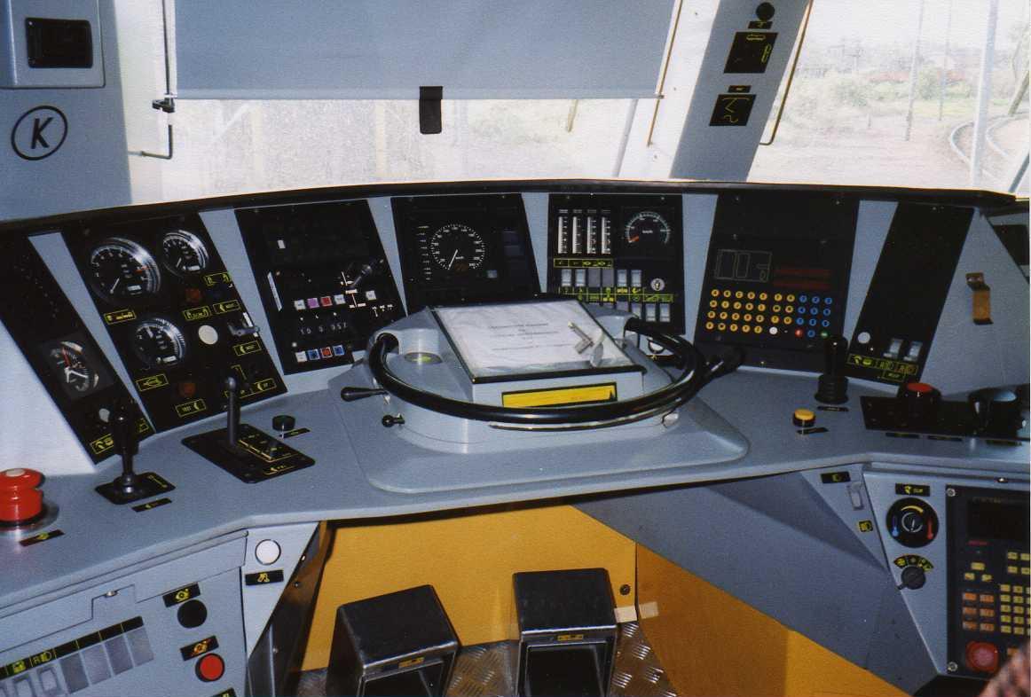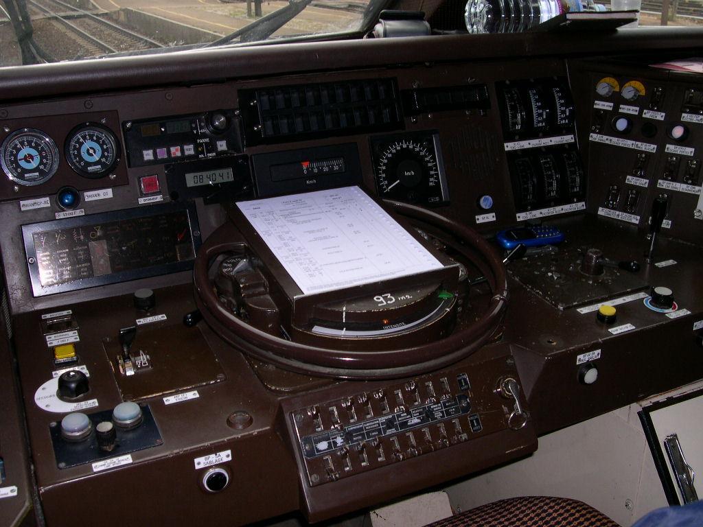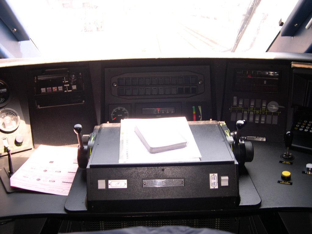 Voici le pupitre d'une 36000 toute neuve ! C'est une photo scanné qui date de Mai-Juin 1999, et on peut voir que la loc n'est pas équipée RS4Code pour circuler en Italie (normalement au dessus du clavier de l'ATESS).