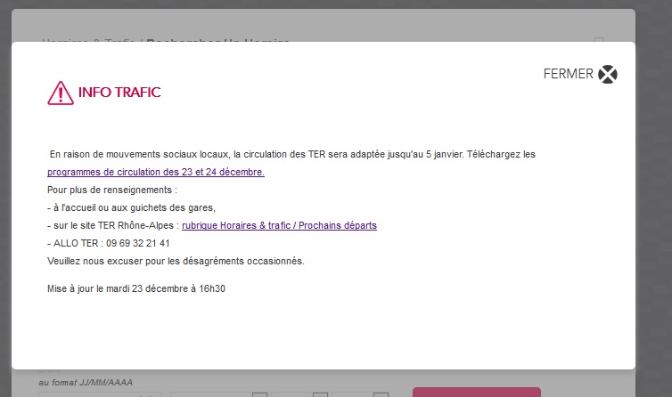 25. sur ter, y'a ca: je me suis demandé si ce ne serait pas l'excuse passe partout pour supprimer des trains maintenant... mais aucune info... rien vu nul part ! par contre plein de cars en remplacement sur les lignes concernées...