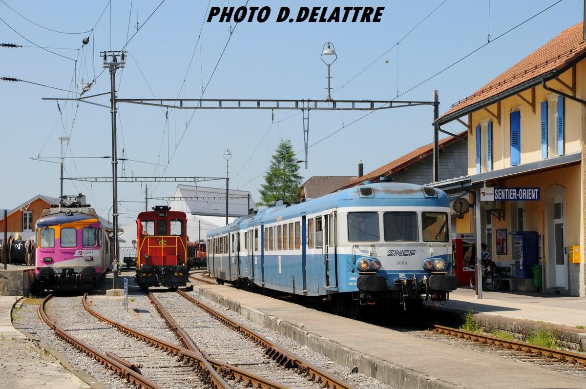 Nous y sommes ! En 2008 suite a des travaux caténaire de longue durée la société Travys à loué les X 2895 et 2866 pour plusieurs semaines pour circulation notamment pour les scolaires entre Le Pont et Chez le Maitre Ecole A noter que ces 2 engins ont été radiés le 23/07/2008 (d'aprés TSO) à leur retour de Suisse, ils sont maintenant préservés par l'AAATV Montluçon Ici en gare de Sentier d'Orient le 23/06/2008
