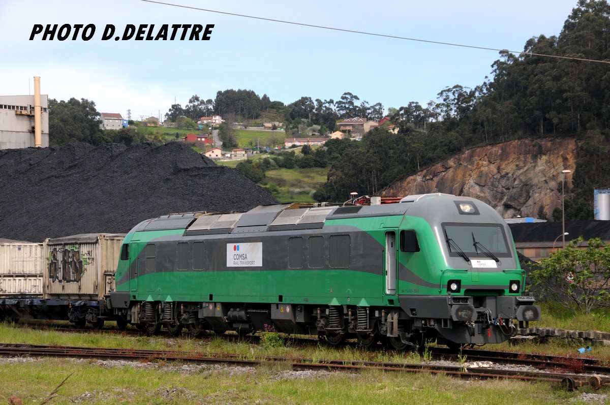 Pourtant en Espagne la Bitrac circule depuis des années ? Photographiée Hors caténaire sur le faisceau d'Abono en 2012 , le panto (baissé) est situé a l'avant elle circule là en mode thermique elle franchira ensuite le col de Pajares en électrique