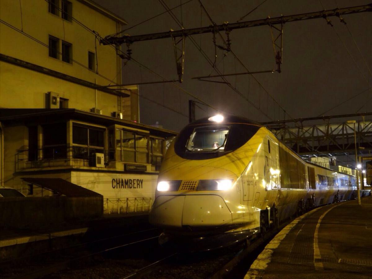 Ce matin à 3h42 lors de l'arrêt [c] d'une heure à Chambéry Rame 3213/14 sur l'Eurostar 9096/97 Londres - Bourg St. Maurice Retour cette nuit départ BSM a 22.23 avec le 9098/99