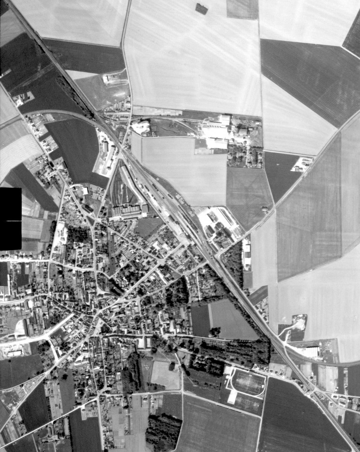 Oui, on voit bien sur la photo aérienne la fin de la voie au niveau des silos. Merci de la rectification ! Mais pour en revenir à cette ligne de Sours, même sur la photo aérienne de 1949, on ne voit pas grand chose. Sauf s’il s’agit du tracé en grisé le long de la D.939.