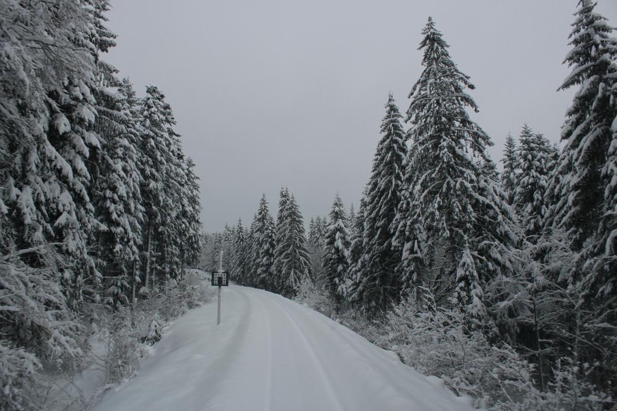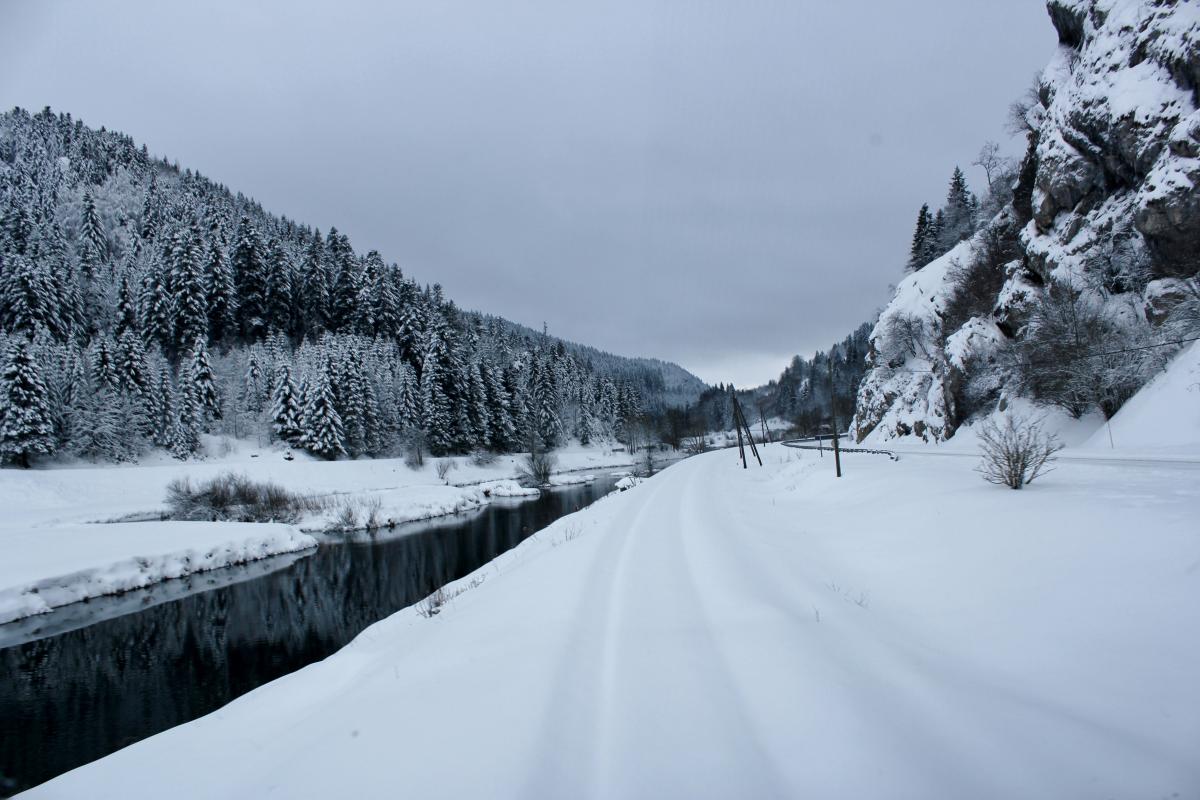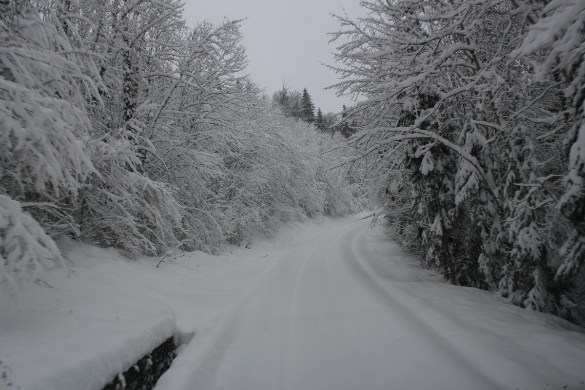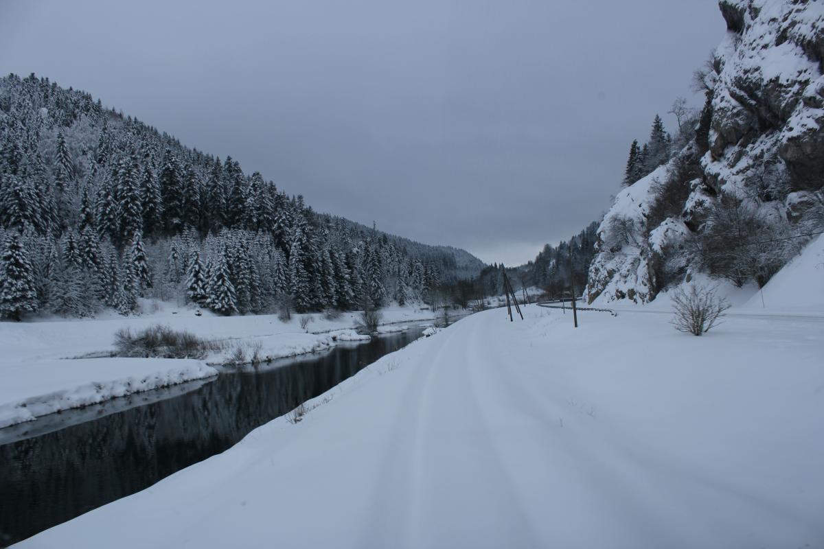 Les roues dans la poudreuse, neige dans le Haut Doubs