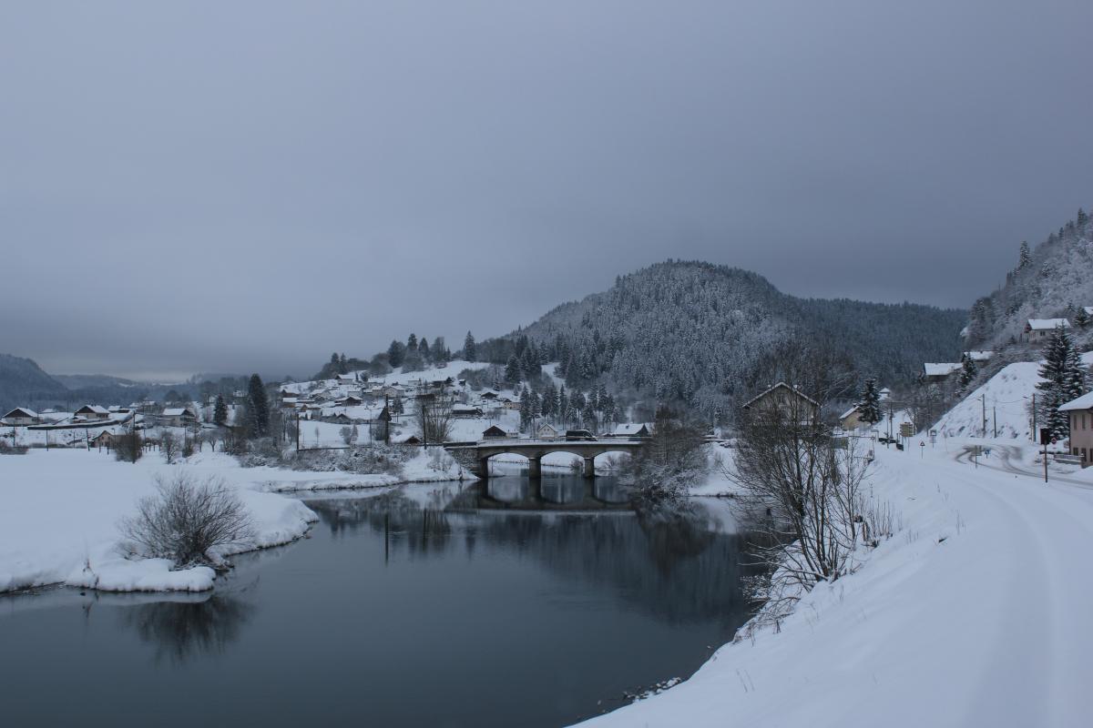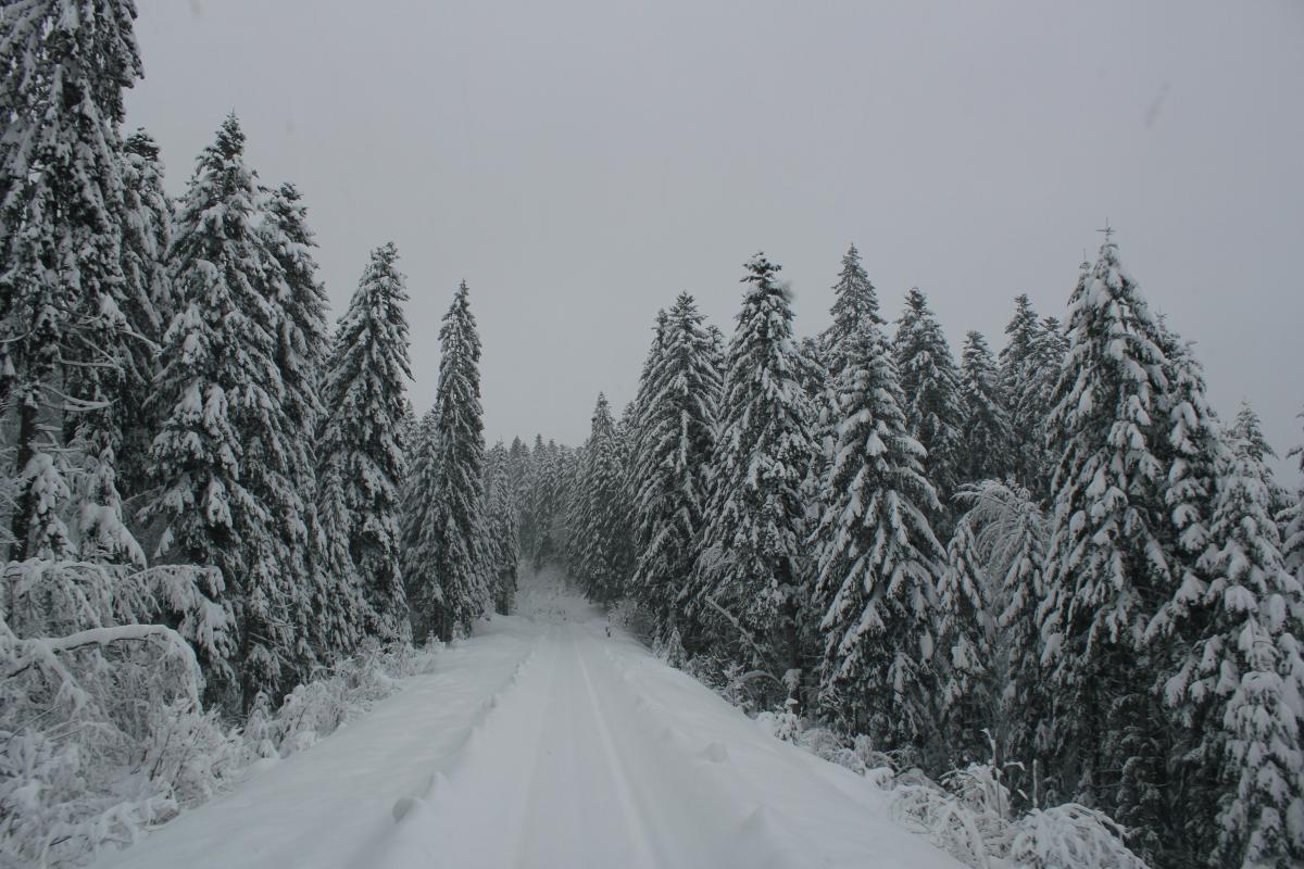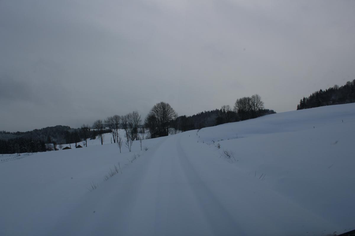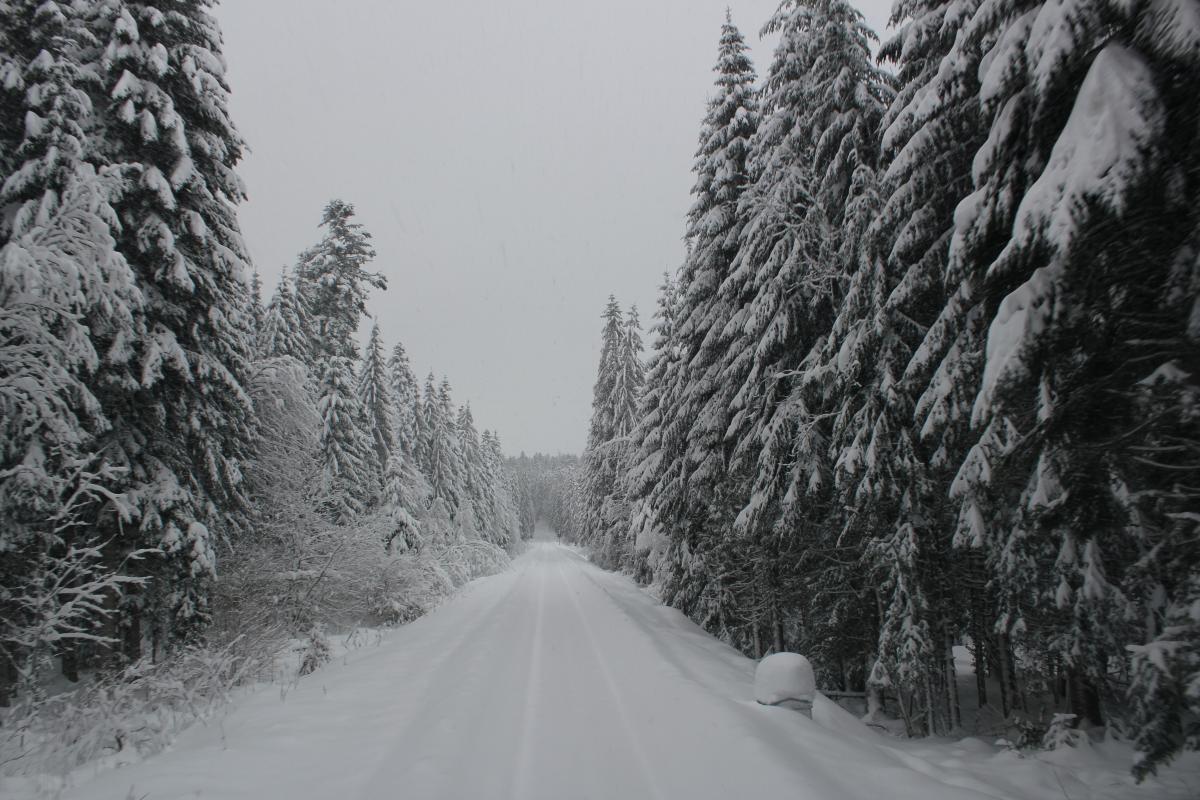Les roues dans la poudreuse, neige dans le Haut Doubs