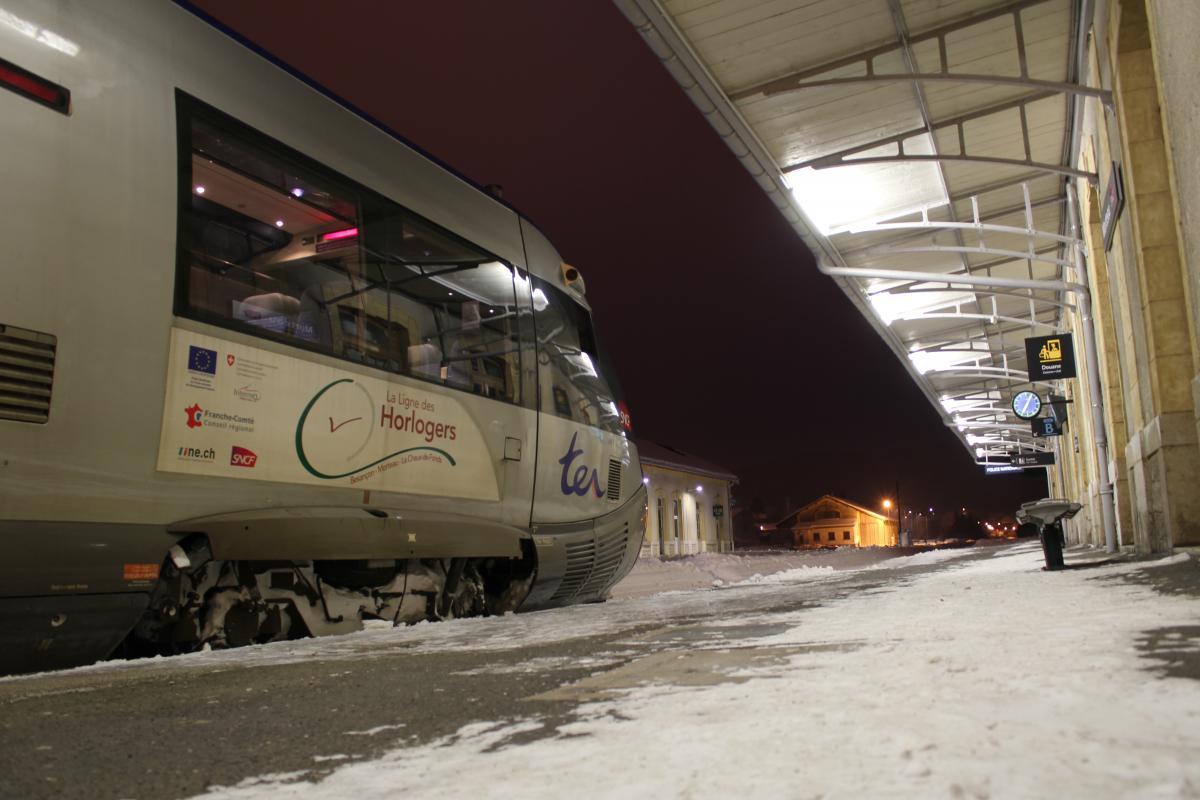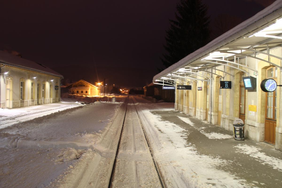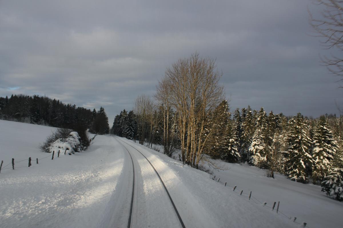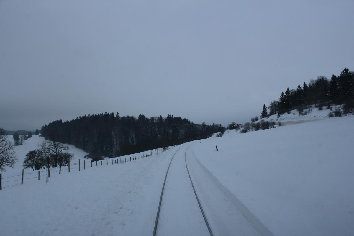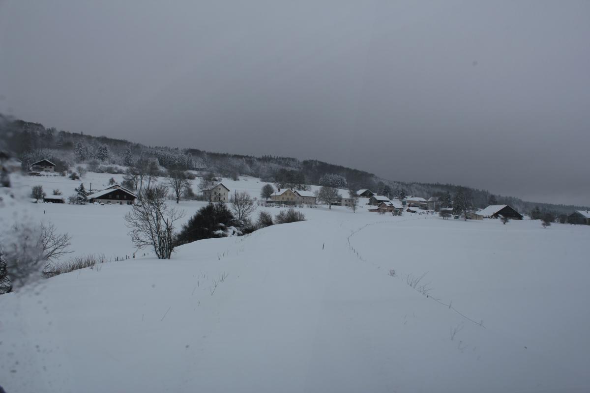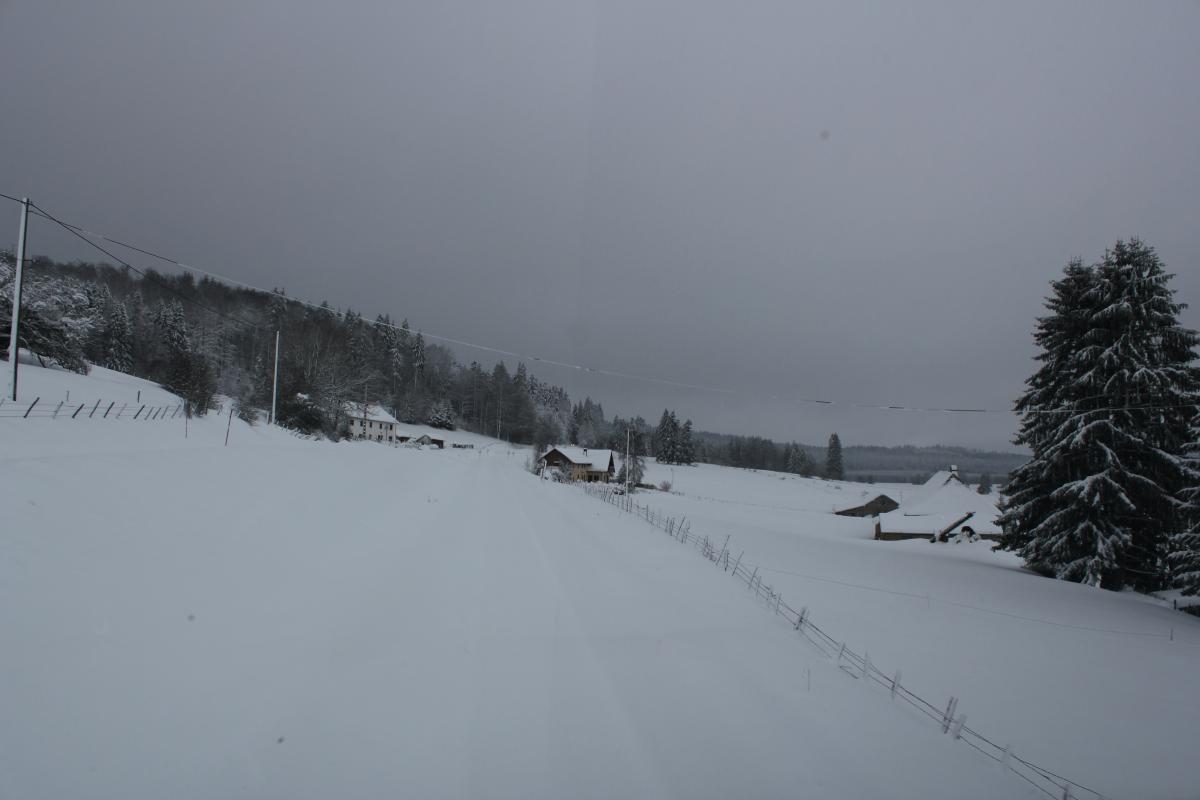 J'ai eu la chance et le privilège ce Week end d'ouvrir la voie entre Morteau, La Chaux de Fonds (CH) et Besançon avec un beau voile blanc sur le sol. Il y avait jusqu'à 40cm au dessus du rail et un silence d'or. C'est suffisamment rare pour être apprécié à juste titre Dame nature m'a offert un beau spectacle dans son plus bel habit. Ne voulant pas garder ça que pour moi, je vous en fait profiter via ce sujet. Un paysage Magnifique, en symbiose avec la nature.... Morteau Locle col des roches (CH) Le Locle coté suisse (CH) Le Locle coté France (CH) Plaine de Morteau Grand Combe Chateleu Gilley, nota : la voie est sur un talus Maitre renard veille.....