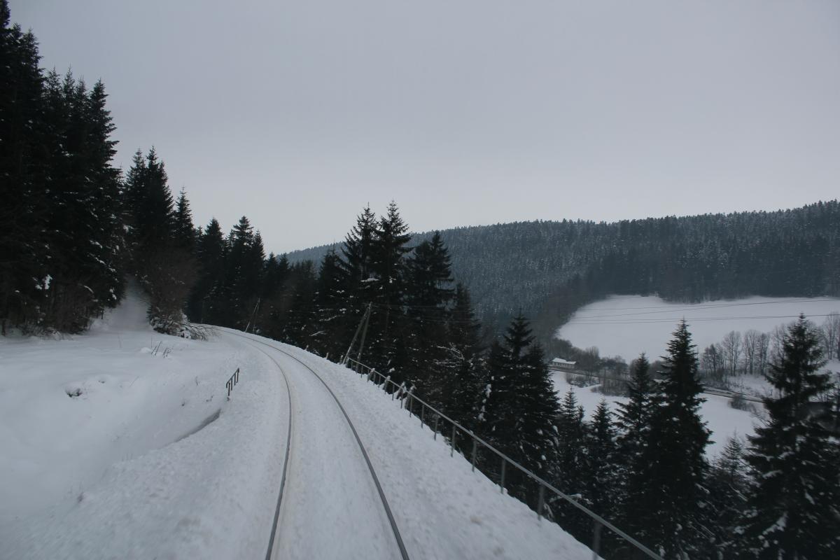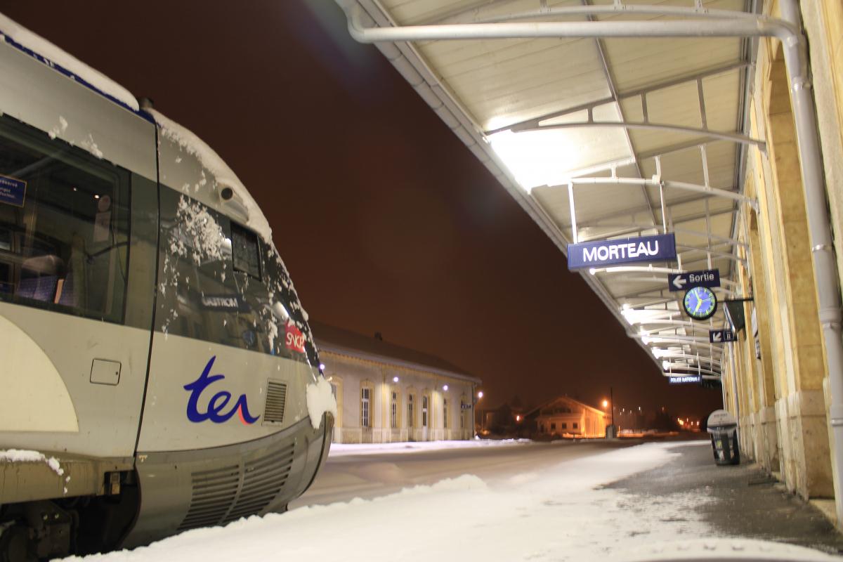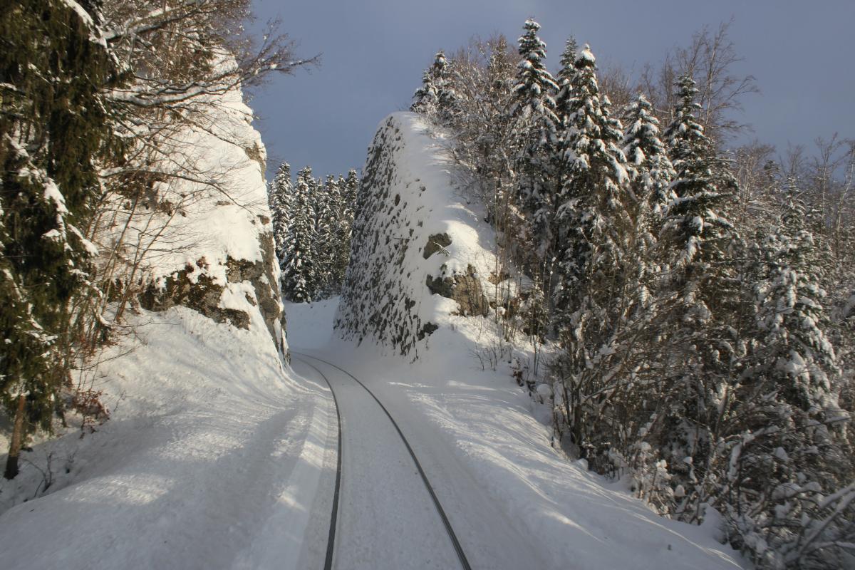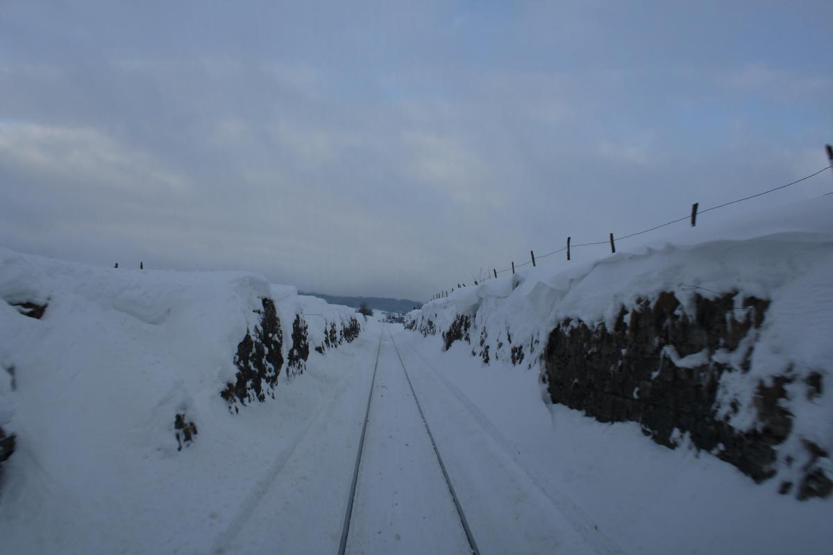 Merci pour les commentaires. J'ai eu de la chance je suis passé quand le jour se levait, car il est vrai souvent les moments comme celui ci voir mieux, de déneigement sont de nuit. Pour te répondre TER200, un 73500 car rame dans la neige, 40cm de neige et une rampe de 25mm ça avance pas fort. 40km/h au cran 7 moteurs à fond, et heureusement j'étais en UM. Sinon j'y serais peut être encore.....lol. Le plus problématique c'est des arrêts en gare car tu risque de ne pas repartir avec le bouchon de neige qui te bloque. Une fois lancé en principe ça va, mais chaque tunnel est une bouffée d'air pour les moteur et la vitesse. Donc c'est beau en photo mais c'est aussi du suspense, et je ne parle pas des arbres.... Mais ça reste quand même magique......