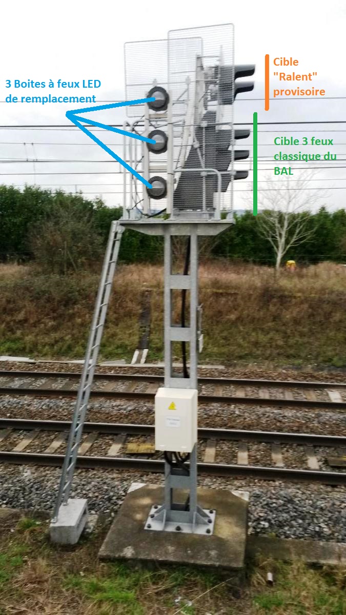 Bonjour, Je pense que Buell LN à bien répondu aux questions. Je suis passé sur la ligne hier, En effet beaucoup de signaux sont réutilisés (question d'économie) et les "pas d'IPCS" ne reprennent pas toujours l'implantation des entrées / sorties VUTP. Du coup les "pas" qui seront supprimés (avec dépose futur des aiguilles) ne seront plus protégé par un carré car il n'y aura plus rien à protéger (hors des carrés protection des "pas VUTP" + protection electrique). Du coup les "cibles Ralent" à distance et "Rappel ralent" avant le pas VUTP seront remplacés par des cibles 3 feux + plaque F typiquement BAL. Si tu regarde bien sur ta photo on distingue bien la cible BAL 3 feux sur laquelle on a fixer temporairement une "cible ralent" pour l'éventuelle utilisation de la VUTP. Ce qui semble plus que rare. Lors de la bascule VUTP / IPCS cette cible provisoire sera je pense déposé et il restera la cible 3 feux classique. Et à ce moment les 3 boites à feux avec feux à LED qui regardent les champs remplaceront les boites à feux à ampoule qui sont en place. Le remplacement sera je pense plus rapide du fait que les boites soient pré installée et pré câblé à proximité de la cible Comme expliquait BUELL LN cela se fera d'une seul coup. Je ne suis pas expert INFRA mais ça me semble logique d'après ce que j'ai pu voir et constater hier lors de mon passage. Au passage j'ai pu voir l'utilisation des feux à LED en ligne vers MACON, Ca crache et c'est puissant. Le clignotement est beaucoup plus marqué qu'avec les ampoules. Par contre j'ai un peu de mal avec le violet qui je trouve n'est pas très réussit en couleur. C'est juste mon avis perso. Bonne journée