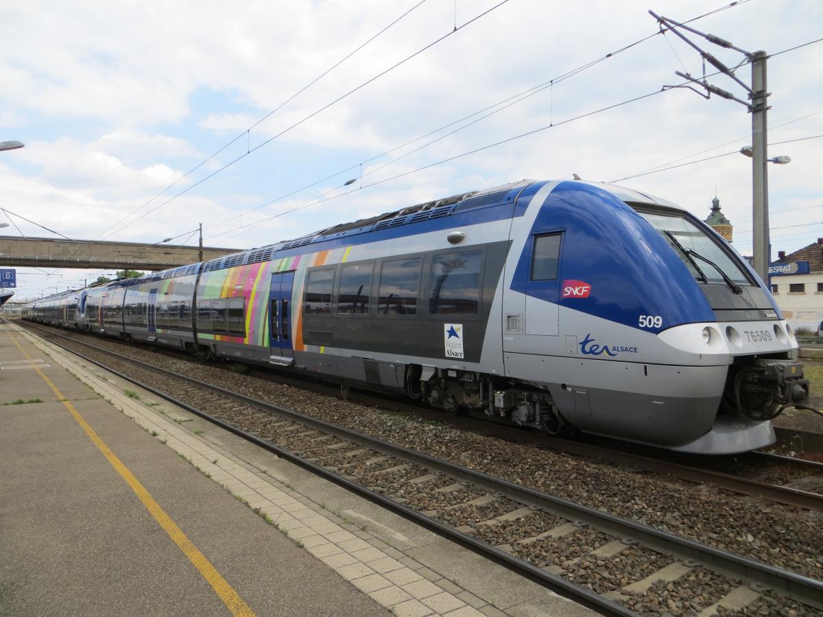 Comment ça, pas assez de place pour les vélos ? (TER spécial Bâle-Sélestat pour le slowUp Alsace qui se déroulait autour de cette ville) Un autre spécial, en direction de Strasbourg. Je l'ai vu repartir avec des vélos plein les allées :
