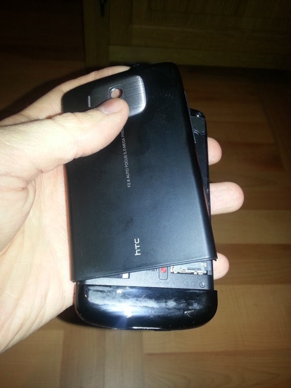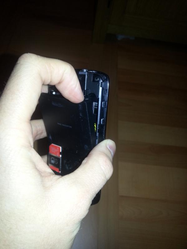 1ère étape : Tu prends ton Sirius comme ça (Avec la 2e main en bas, le pouce là où il y a marqué "HTC", il me manquait une main pour prendre la photo ^^) : Ensuite, tu pousses avec les 2 pouces vers le haut, ça va donner ça : Et tu sors la batterie comme ça : Edit : Et hop, version redimensionnée.