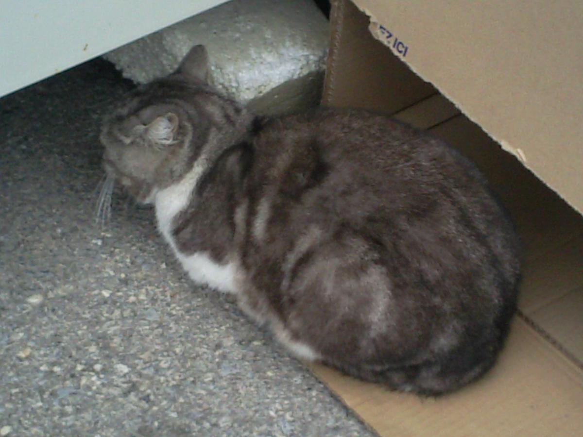 Des chats qui ont trouvé refuge au PR de Montpellier, il sont nourris par l'agent de la société de nettoyage, une caisse commune est réalisée chaque mois pour la nourriture. Source : Moi-même Source : Moi-même Source : Moi-même