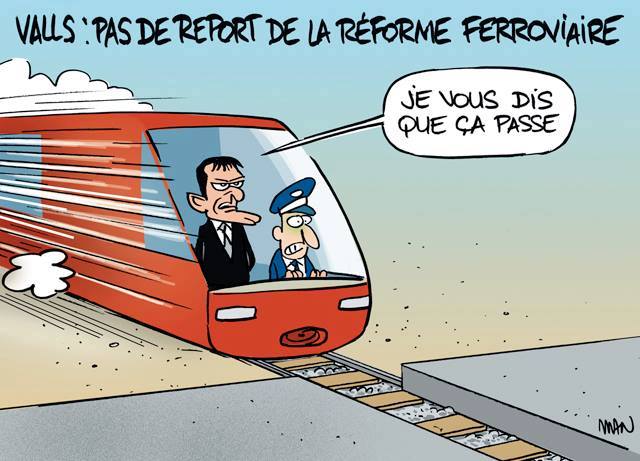 17. Dans quelques mois, lorsque les effets néfastes se feront sentir, avec hausse des tarifs, des usagers encore plus entassés dans les RER, moins de TER avec moins d'arrêts dans les gares, une accessibilité voyageurs limité aux grandes gares (utilisez Internet).... Ils hurleront c'est un scandale, et bien évidemment qui seront les premiers visés "ces nantis de Cheminots..." Des moutons, des veaux, des égocentriques qui le paieront tôt ou tard !!! En 2017, Hollande et le PS seront atomisés (déjà plus de 200 000 adhérents de perdus en 2 ans), ils vont se retrouver dans la plus grande crise depuis l'existence de ce parti et ne seront pas au second tour : Hollande s'en contrefiche, il sait qu'il est archi grillé, Valls lui, moins...