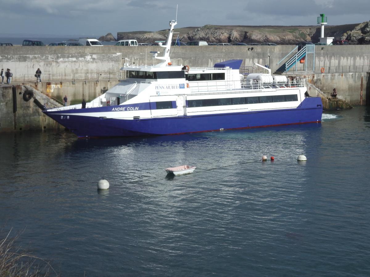 La navire André Colin à l'embarcadère de Ouessant. Le dernier bateau de la journée qui rejoigne le continent avec escales au Conquet et Camaret, il était rempli...