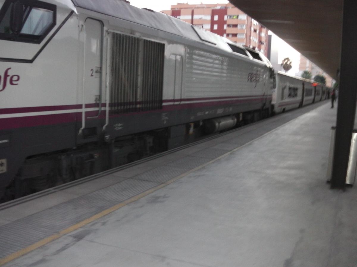12. Etape Algeciras Le train Altaria 9367 à destination de Madrid Puerta de Atocha, stationné quai n°3, départ 8h43 La gare, gérée par l'ADIF (équivalent RFF en Espagne), tout comme les infrastrutures L'Altaria quai n°3 En arrière plan les collines Andalouses