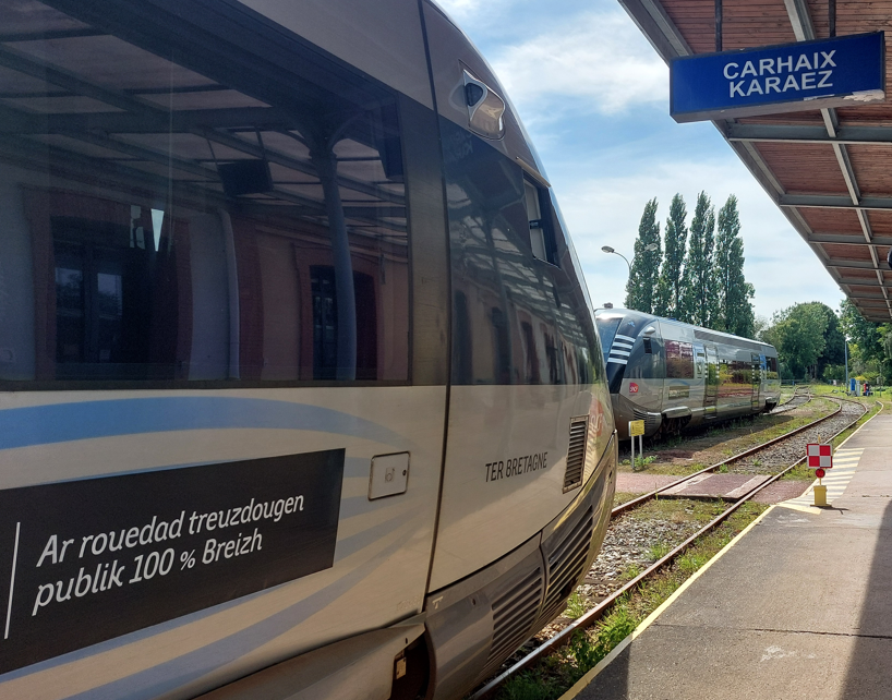 Samedi 6 septembre 2025 - Poitiers à Carhaix Gare de Poitiers- TGV INOUI 8440- en provenance de Bordeaux Saint-Jean et à destination de Paris Montparnasse Hall 1&2 Gare de Saint-Pierre des Corps - Train NOMAD 16572, en provenance de Tours-Centre et à destination de Caen - Changement de sens Gare du Mans - TGV INOUI 5210, en provenance de Lille-Europe et à destination de Rennes Arrivée à Rennes, très peu de temps pour un nettoyage très rapide, les 2 rames repartent moins de 45 minutes plus tard vers Lille Gare de Rennes - TGV INOUI 32849, en provenance de Paris Montparnasse Hall 1&2 et à destination de Brest Gare de Guingamp - Train BREIZHGO 855325 à destination de Carhaix Terminus Carhaix