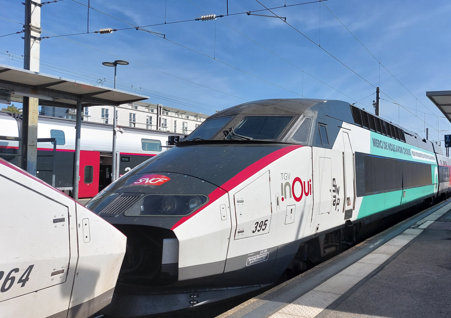 Samedi 30 août 2025 Voie C de Lyon Perrache - TGV INOUI #5351 à destination de Nantes Voie 2 de Saint-Pierre des Corps - TGV INOUI #8375 en provenance de Paris Montparnasse et à destination de La Rochelle-Ville Gare de Poitiers Train TER Nouvelle Aquitaine #836044 à destination de Tours-Centre