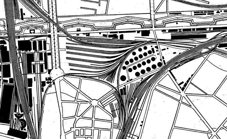 Une carte de 1872, où l'on peut voir les fortifications et l'immense maillage ferroviaire de ce quartier.