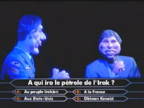 A l'origine c'est une parodie d'un jeu télévisé débilisant faite par les guignols de l'info, et devenant une sorte de running-gag. L'idée originelle étant d'introduire une proposition tellement farfelue que le spectateur est guidé pas-à-pas vers la réponse exacte au Quizz qu'il regarde, sachant que sa capacité de réflexion est déja sévèrement entamée par sa position de téléspectateur engoncé dans un canapé. Cette astuce est aussi largement utilisée par les publicitaires pour diriger les consommateurs vers un produit ou une marque. Très utilisé en politique, par ailleurs, pour que le citoyen-électeur se sente convaincu qu'il n'existe que deux choix politiques sérieux, les autres étant farfelus. Ensuite, dans la culture populaire, cette réponse peut recouvrir plusieurs significations : l'abstention sur un sujet clivant, l'ignorance sur un sujet complexe, le désintérêt sur un sujet rébarbatif, etc....