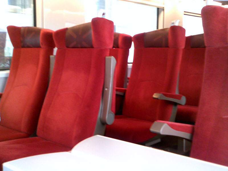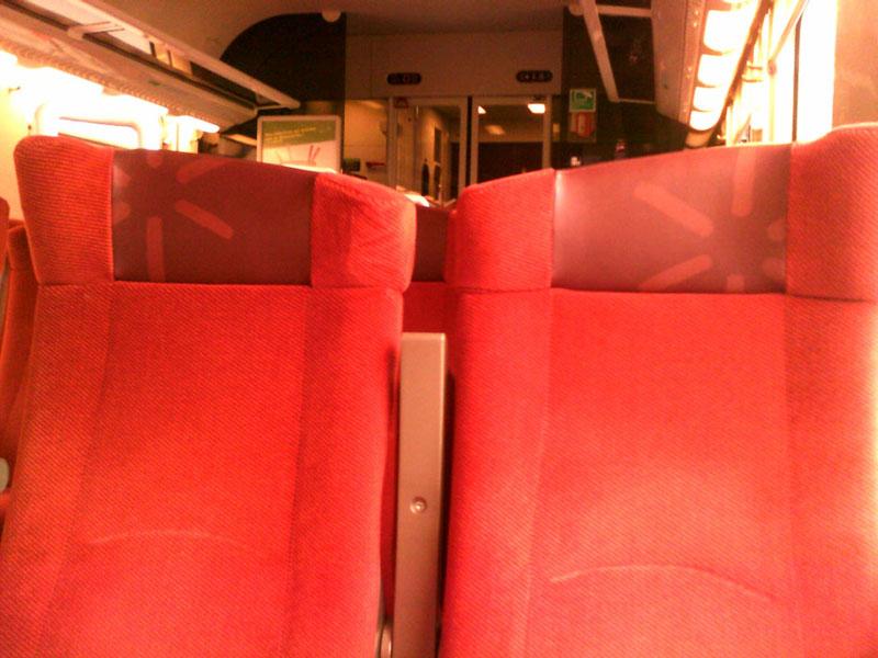 aménagement interieur des voitures corails TER languedoc roussillon en configuration couloir central....