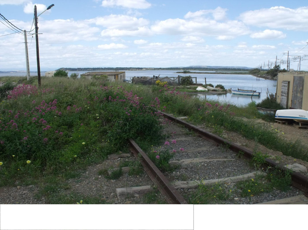voie sur berge....Il s'agit de la voie partant de la gare de Port la Nouvelle vers la cimenterie Lafarge.