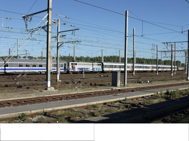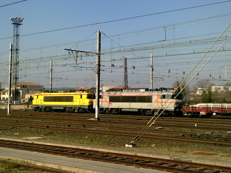 On dirait bien qu'il y a une BB9300 juste devant la 7203...en livrée tout service.