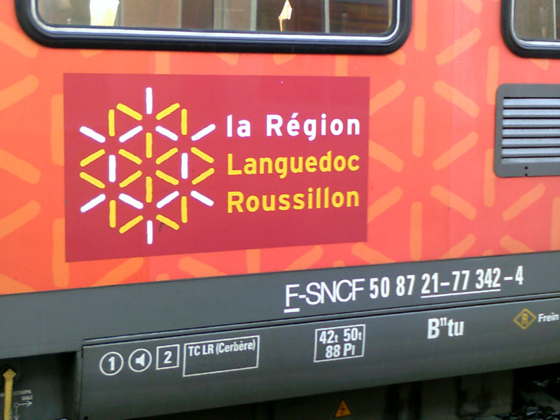 TER Narbonne-Toulouse : la BB8614 officiée hier avec son coupon RRR.......... aujourd'hui c'était la 8608 "béton" qui était à la traction.
