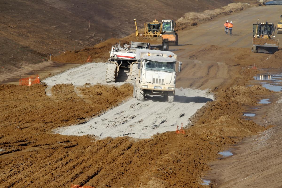 Activité soutenue route d'Alençon entre Saint Saturnin et La Bazoge Habillage d'un pont on sent la fin des travaux génie civil. Chargement de tombereau.