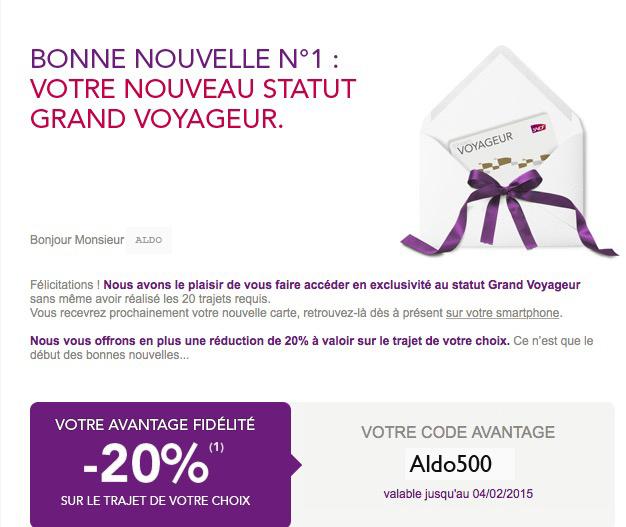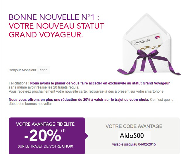 DOWN: dans un autre post, j'ai dit du mal de la SNCF, j'ai terriblement honte! UP: reçu par mail UP: j'aime la SNCF, comme quoi, tout s'achète (mais j'ai toujours honte)