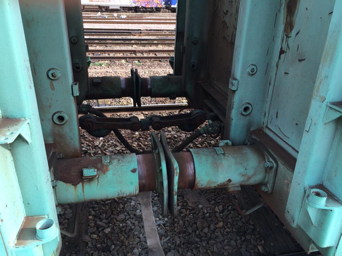 Voici une photo faite hier à Toulouse. Un train de transport de billes s'est arrêté et j'ai remarqué que les attelages sont , une fois sur deux sur deux sans possibilité de dételer. En effet, pas de clef de CG et le levier de pour détendre la manille est absent. Je me demande quelle en est la finalité.- pensée philosophique