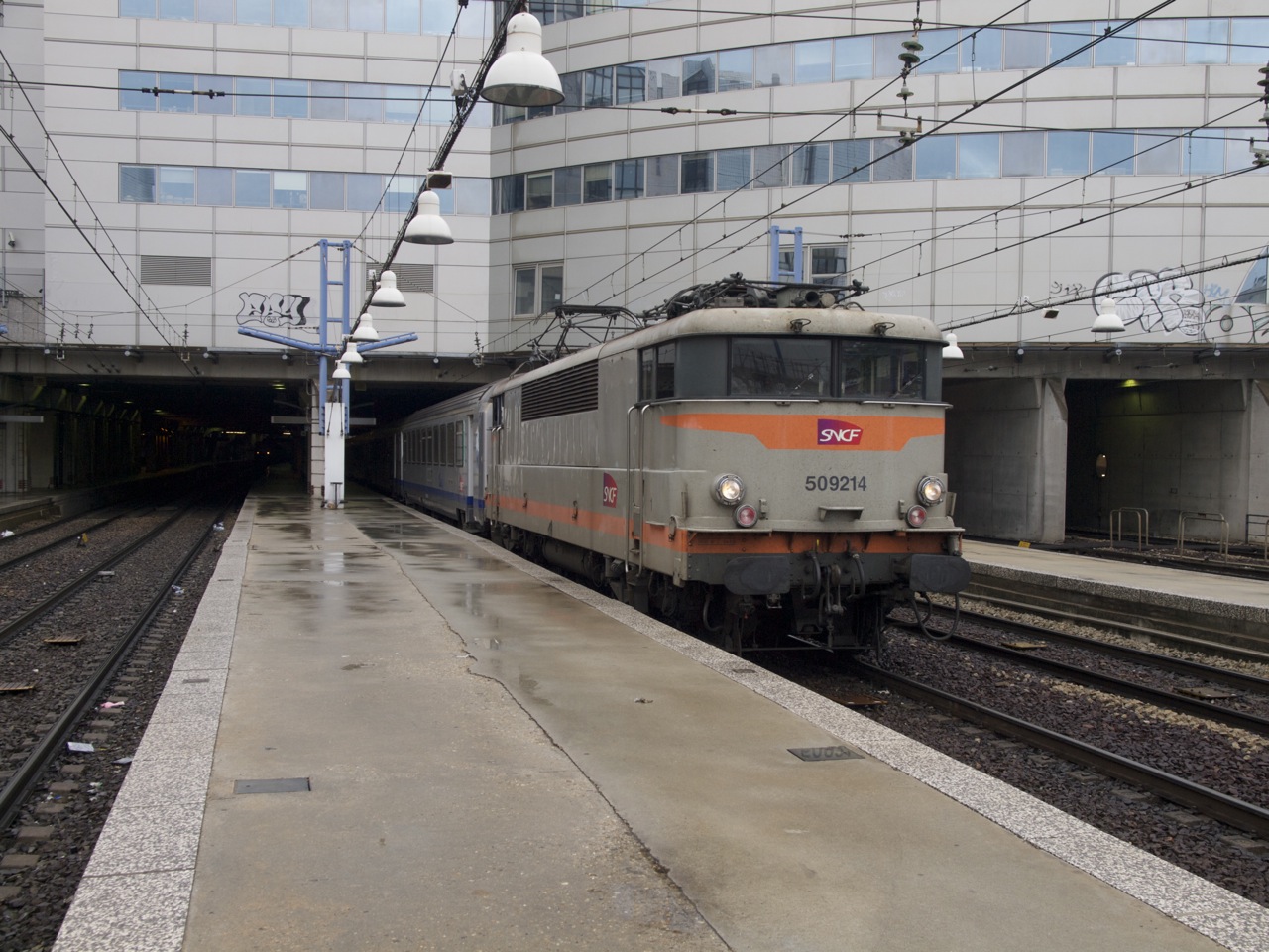 Bon, je suis redescendu essayer mon nouveau reflex malgré le temps maussade. Même train mais pas de bol, pas de livrée fantôme cette fois-ci. Même conducteur, aussi souriant que l'autre jour, on le voit bien, malgré la petite déception d'une 9200 inconfortable.