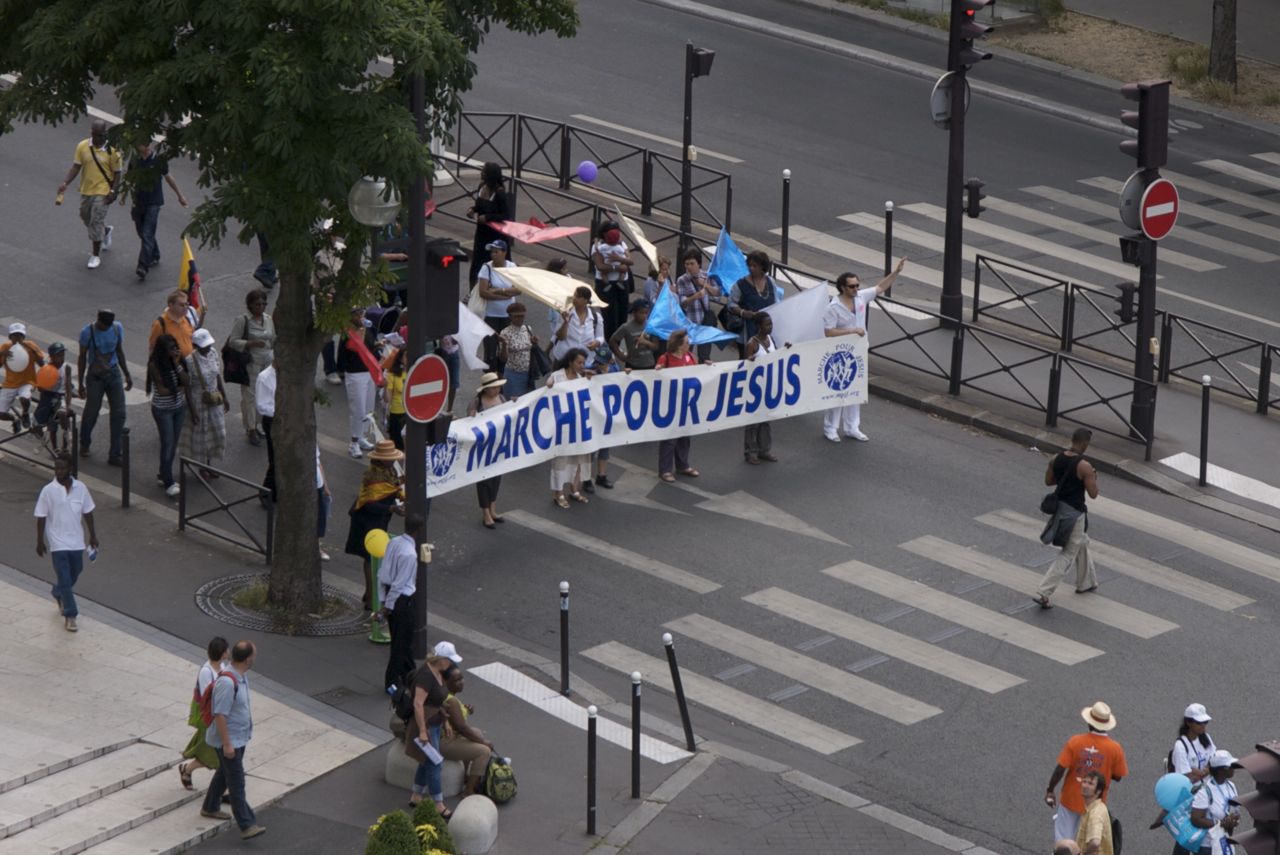 Aujourd'hui à Montparnasse, les manifs se suivent et ne se ressemblent pas. Juste après celle des Gays et lesbiennes, celle-ci: