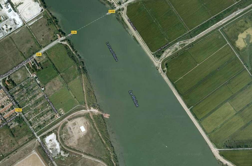 Voilà. Mais pas n'importe quel embarcadère car c'était celui de l'ancien bac ferroviaire de Barcarin qui permettait de relier les installations du port de Fos aux établissements du Salin de Giraud. Ce bac n'est plus en service et les voies ont même été déferrées des 2 côtés du Rhône. Il y a un autre embarcadère plus au Sud, pour le chargement des expéditions. La même photo avec un peu plus de recul: Et le lien vers le Street View: http://goo.gl/maps/XbLki Voici un lien vers le réseau ferroviaire du port de Fos: http://www.marseille-port.fr/fr/Content/Documents/2013/Ferroviaire/plan_simplifie_vf_fos_caronte_lavera.pdf On voit l'amorce de la voie sur la gauche du plan avec la mention ex CSM SE (Compagnie de Salins du Midi et des Salines de l'Est). Le plan date de 2011. Depuis, il y a d'autres raccordements qui ont été fermés, par exemple entre le point 1 et Port-Saint-Louis. Quelqu'un sait il s'il existe d'autres bacs ferroviaires en France? A toi aldo500!