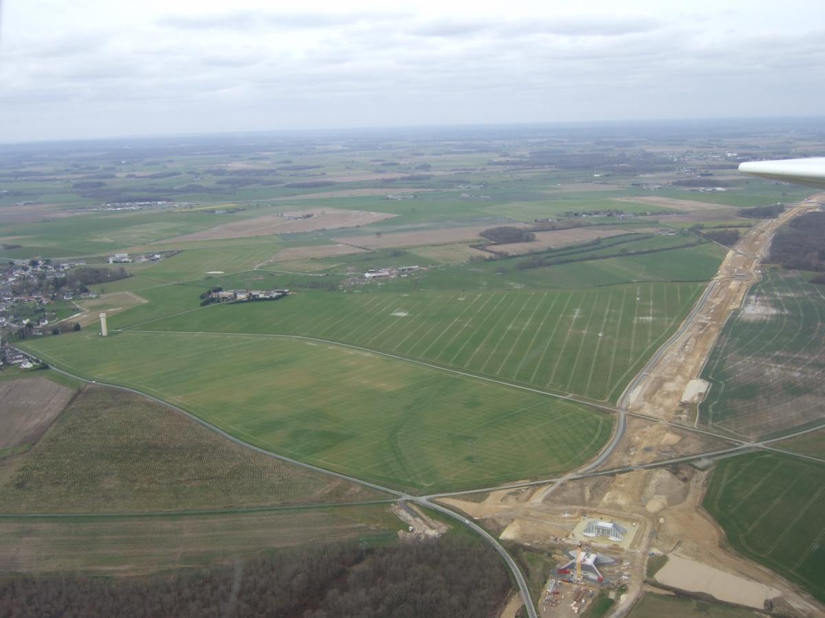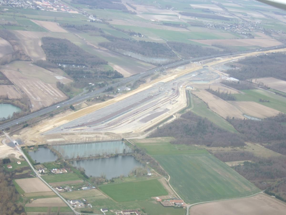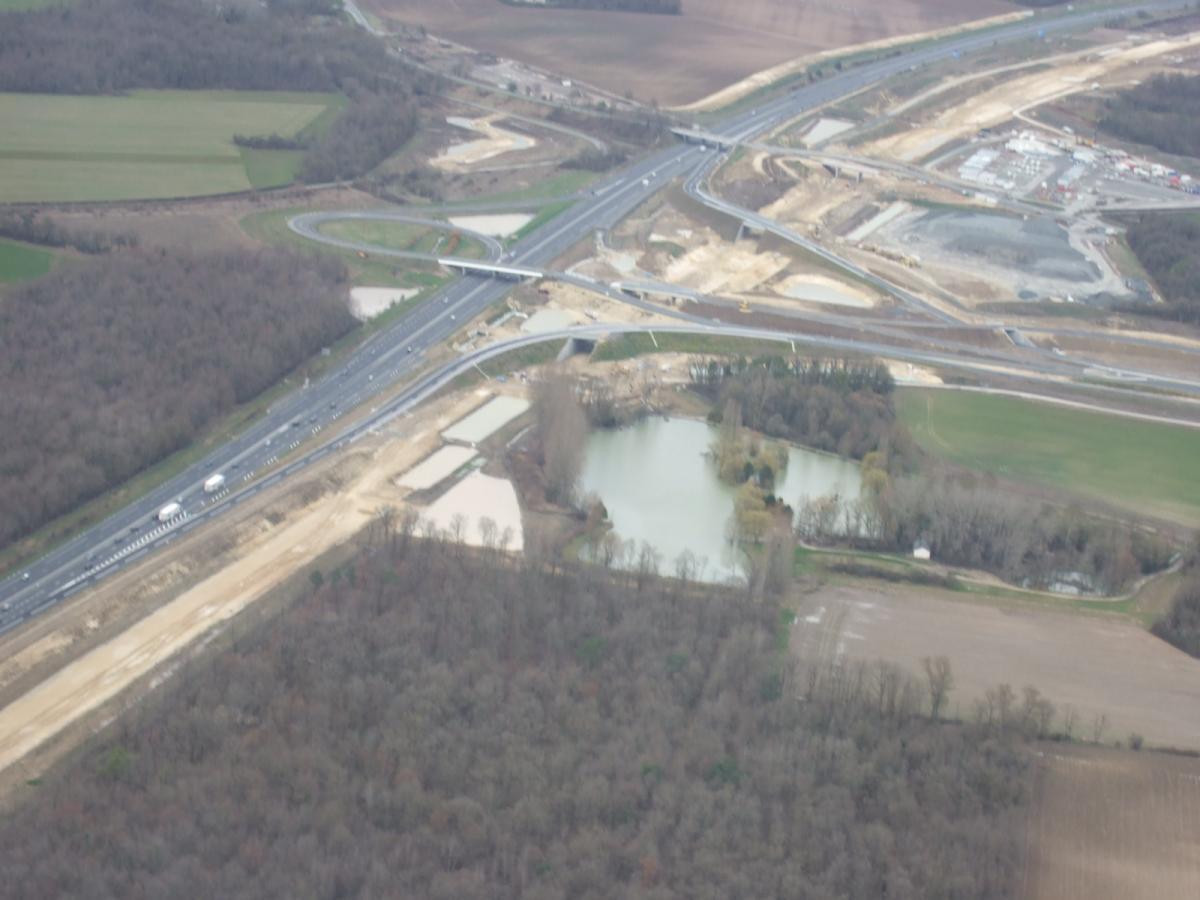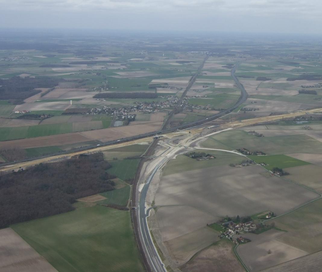Merci pour le compliment. Mais je n'étais que passager et sans la généreuse invitation du pilote que je remercie vivement, je n'aurais pas pu vous présenter tout ceci. D'un autre côté, c'est plus facile de prendre les photos quand on n'est pas aux commandes! J'en remets quelques unes, désolé pour la qualité qui n'est pas extra. La base de travaux et le pont sur la Vienne: Vue vers le sud: Retour à la base de travaux avec tout à fait gauche de la photo le raccordement à l'ancienne ligne Port-de-Piles - Port-Boulet réactivée sur quelques kilomètres. Un lien sympa: http://www.litteratur.fr/?p=5742 Vue vers le nord au dessus de Villeperdue: Au niveau de l'échangeur de Monts-Sorigny: