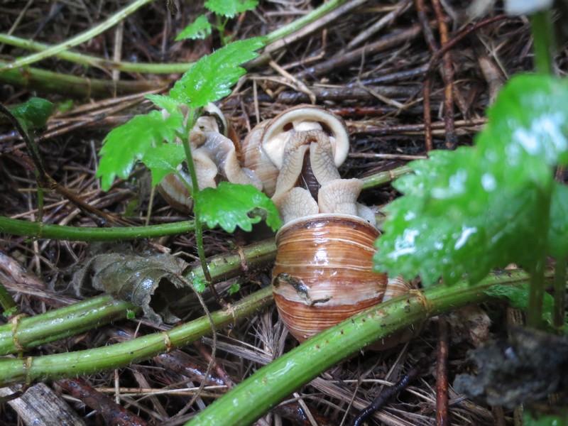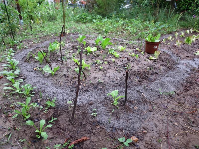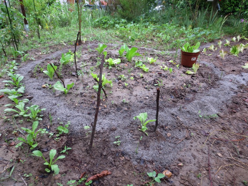Salut , Attention , une de ces photos , est classée X : Bon , les escargots s'amusent à proximité du tas de compost , ce qui promet plus tard des renforts de gastéropodes . Je ne sais s'ils sont motivés " pour faire crac-crac " , " à titre de représailles " en raison du barrage de cendres , qui entoure les parcelles de salades , mais auprès de la ligne des tomates , les plans repiqués , ne sont pas protégés , donc après la bagatelle ... à table ...