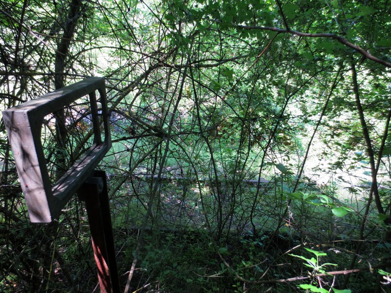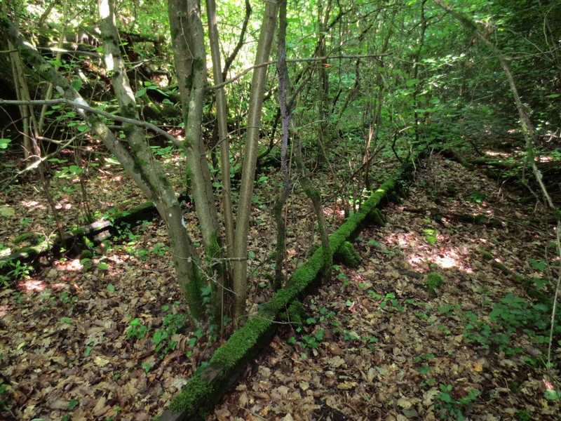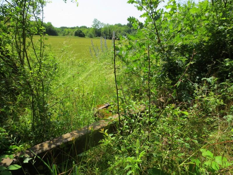 Salut , La cabane était au bord de la voie , Après la photo de l'ancien support de voie à double champignon , on distingue à peine sur la vue suivante , un ancien passage recouvert de plancher .
