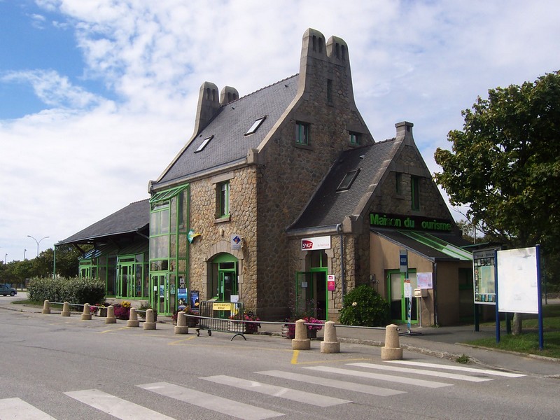 Bonjour , Gare de Crozon , aout 2010 : Elle a gardé une petite fonction ferroviaire , avec la présence de la boutique de vente SNCF , le reste du bâtiment est consacré à l'office du tourisme .