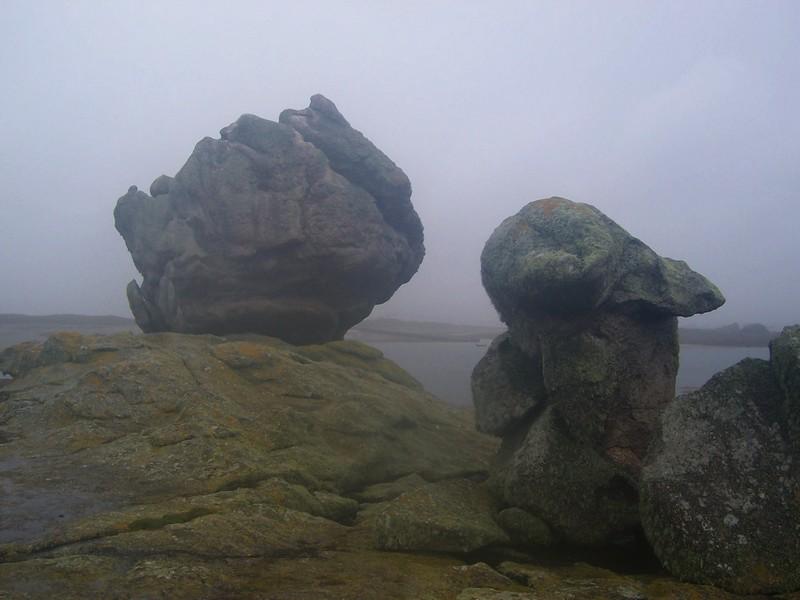 Hello, Riders on the strorm : Ces rochers dans le brouillard , ont quelque chose d'irréel ; Ile de Sein , juillet 2008